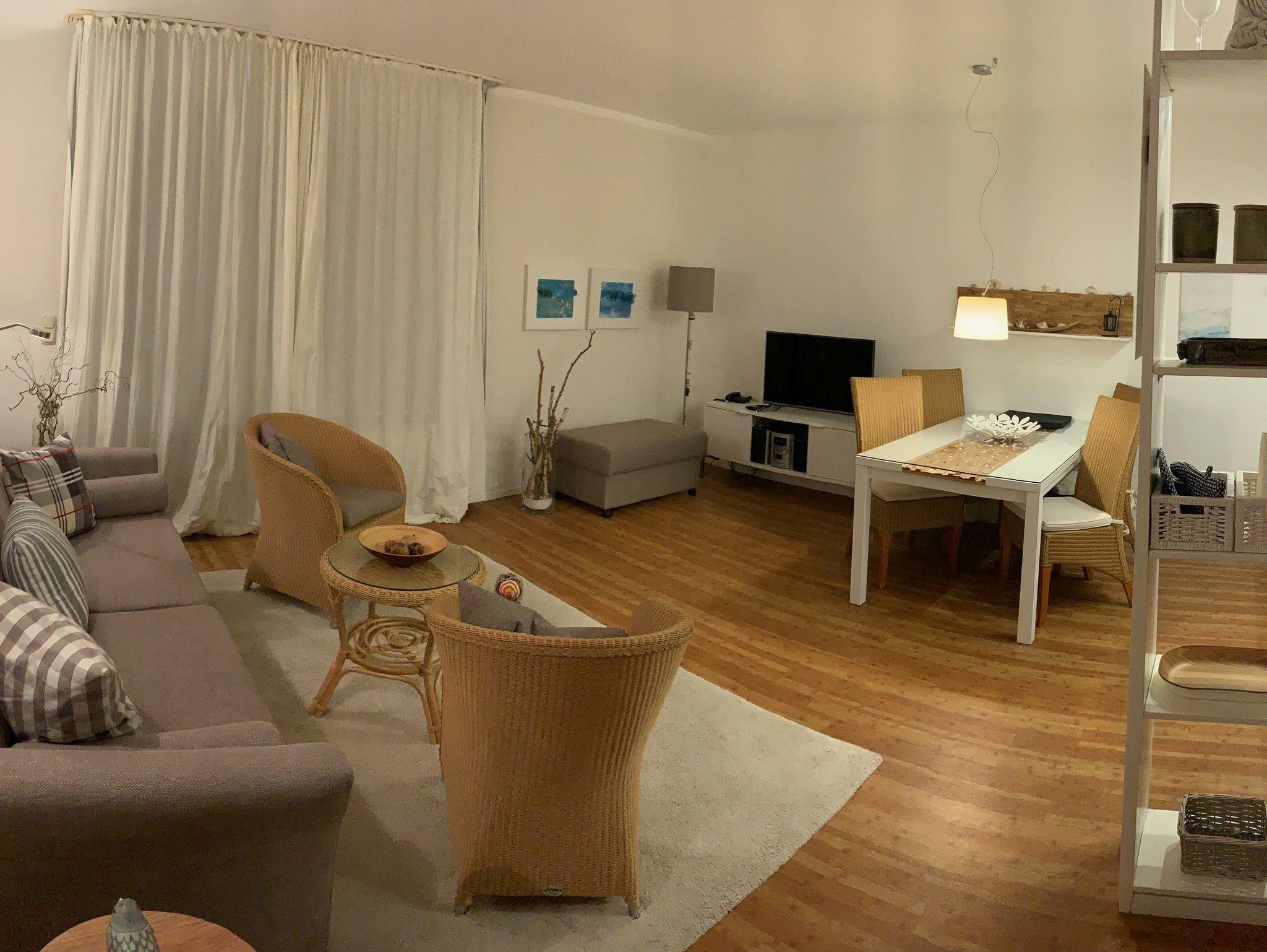 Sie wohnen in einem hochwertigen - maritim gestalteten - groß-zügigen 2-Zimmer-Appartement für bis zu 4 Personen auf 55 m² Wohnfläche im 1. OG mit zwei West-Balkonen.