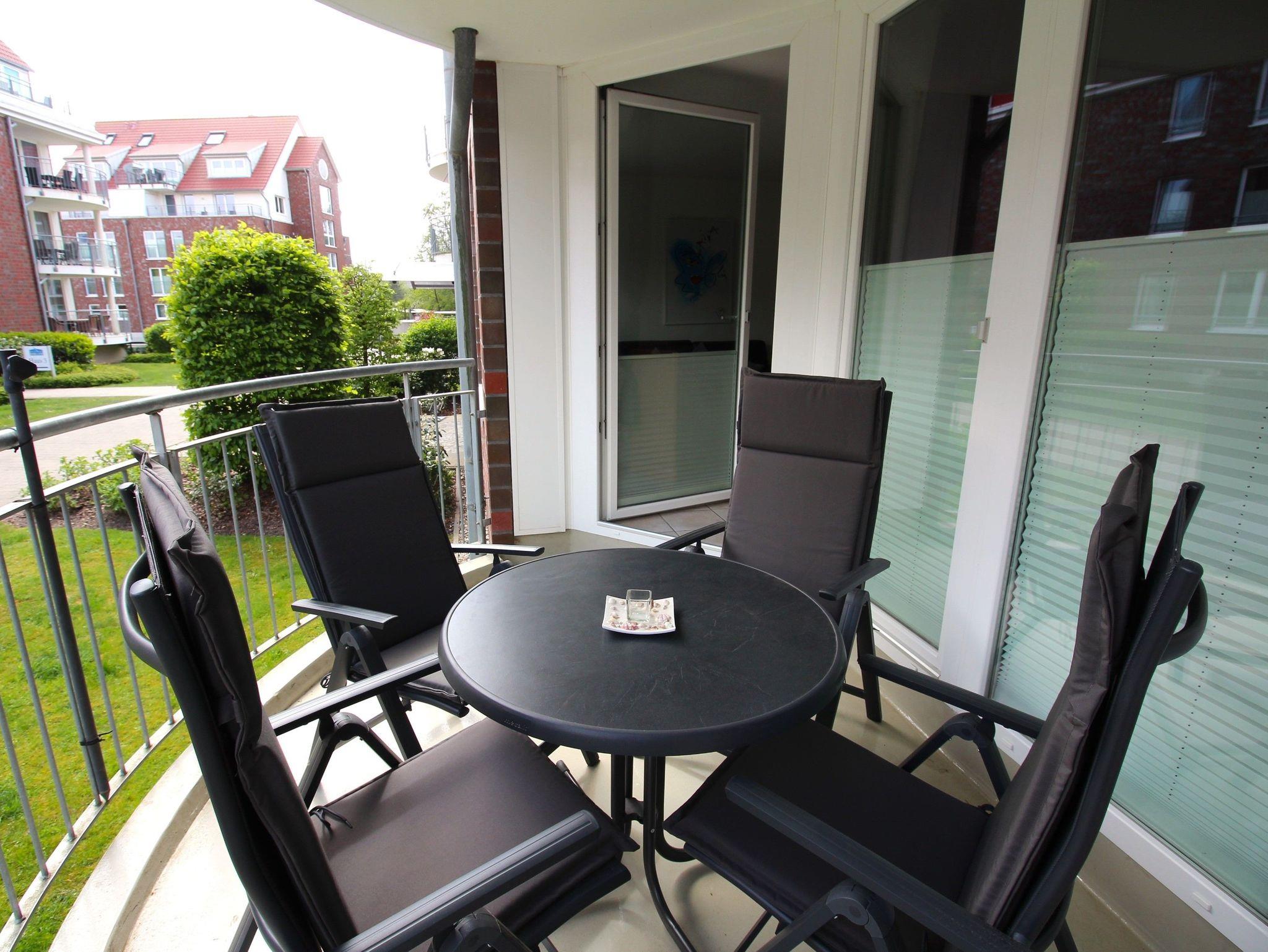Um einen entspannten Urlaubstag ausklingen zu lassen bietet sich der vorhandene Balkon mit seinen schönen Möbeln geradezu an.