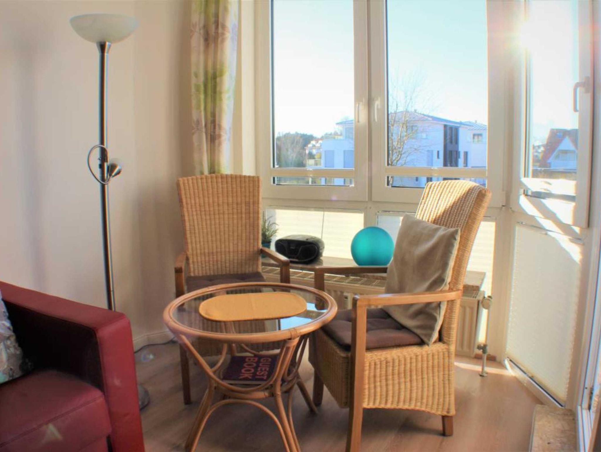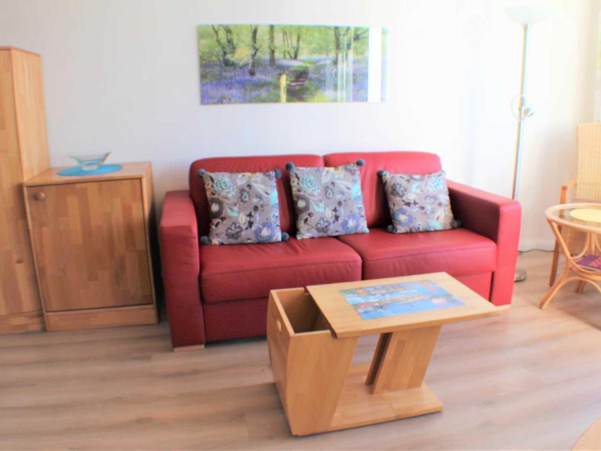 Sie wohnen in einem 1-Zimmer-Appartement für bis zu 2 Personen auf ca. 38 m² im 1. Obergeschoss. Wohn-Schlafraum mit bequemer Schlafcouch und gemütlichem Wohnraum, getrennte Betten in einer Schlafnische (optisch vom Wohnraum getrennt), voll ausgestatteter Küchenbereich einschl. Geschirrspüler u. Mikrowelle, Dusche/WC, Kabel-TV mit DVD-Player, Radio mit CD-Player, WLAN, Balkon. PKW-Stellplatz vor dem Haus.