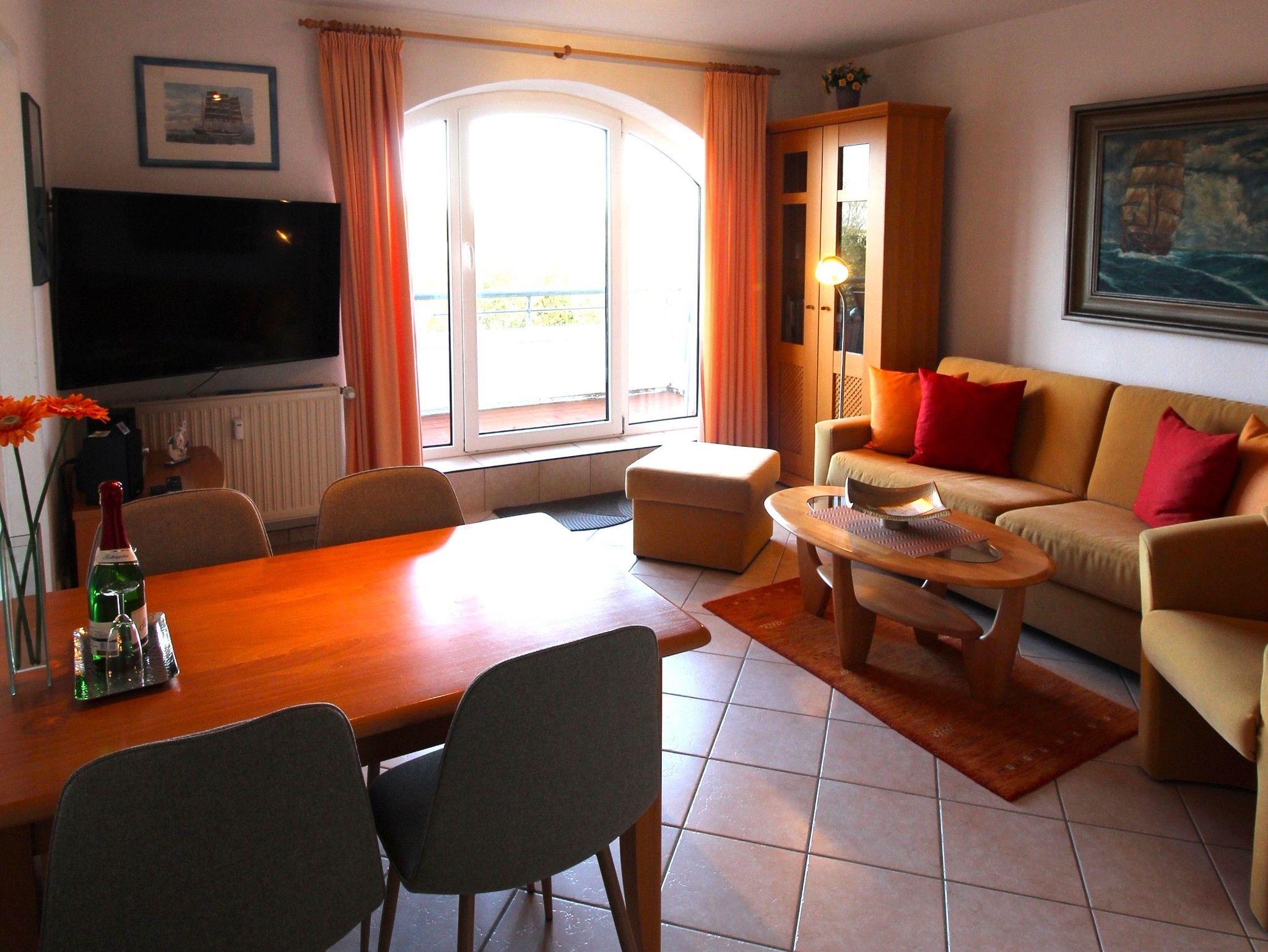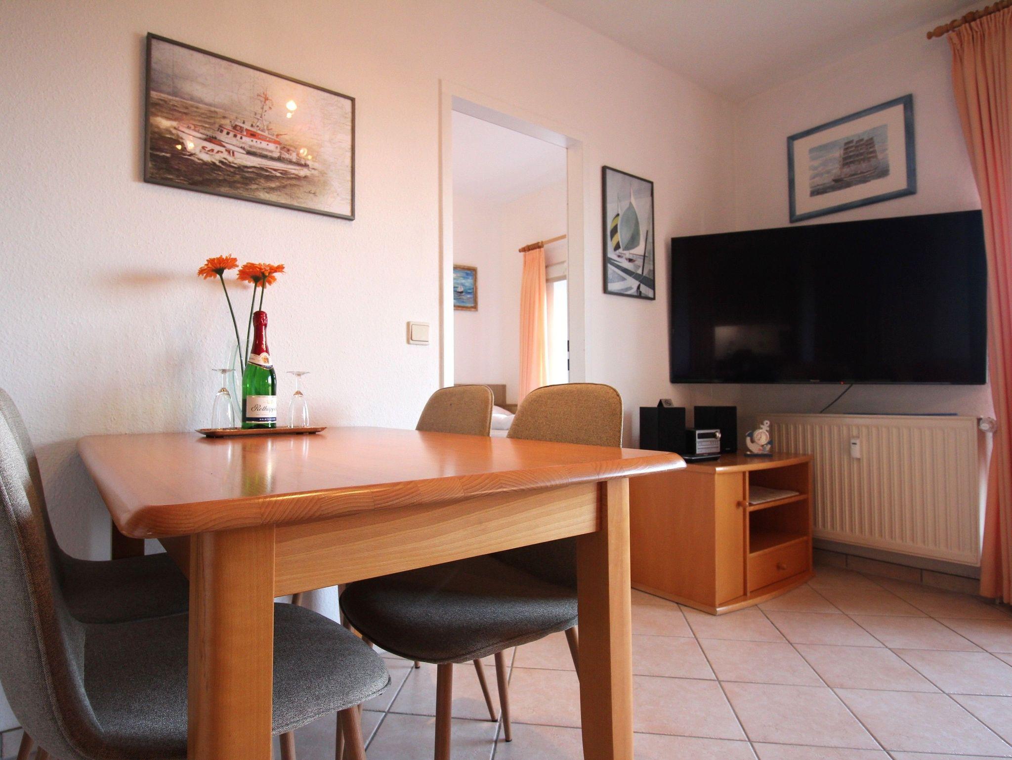 Sie wohnen in einem 2-Zimmer-Appartement mit ca. 41 m² im 2. OG. Wohnraum mit Kabel-Flachbild-TV, separater Essplatz, Küchenbereich mit Geschirrspüler und Mikrowelle, Schlafraum mit getrennten Betten, modernes Bad mit Dusche/WC.
