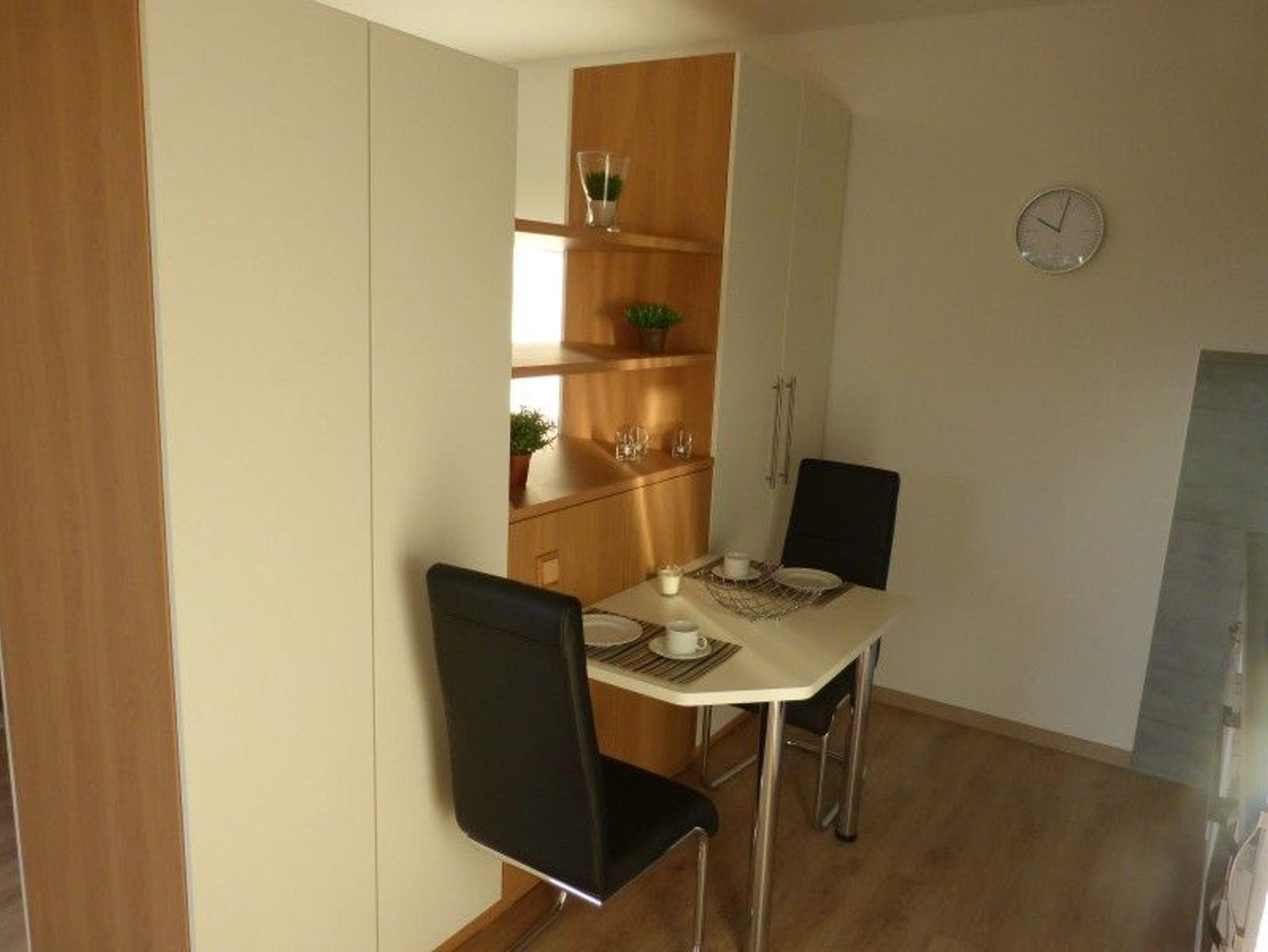 1-Zimmer-Appartement für 1-2 Personen auf ca. 35 m². Wohn-Schlafraum mit Doppelbett und Couch, TV, separatem Essplatz, Küchenbereich, Balkon oder Terrasse, Bad mit Dusche/WC. PKW-Stellplatz vorhanden.