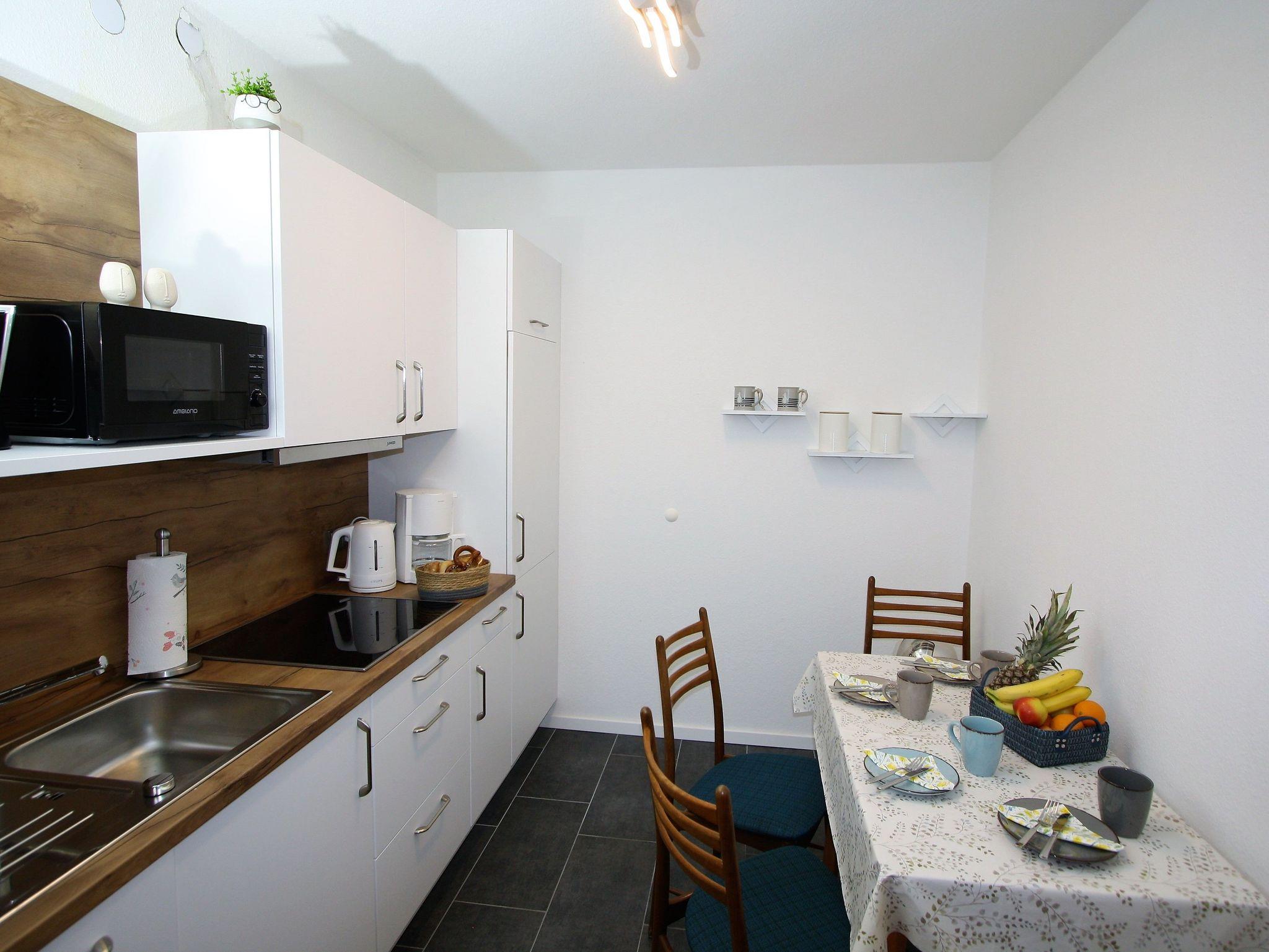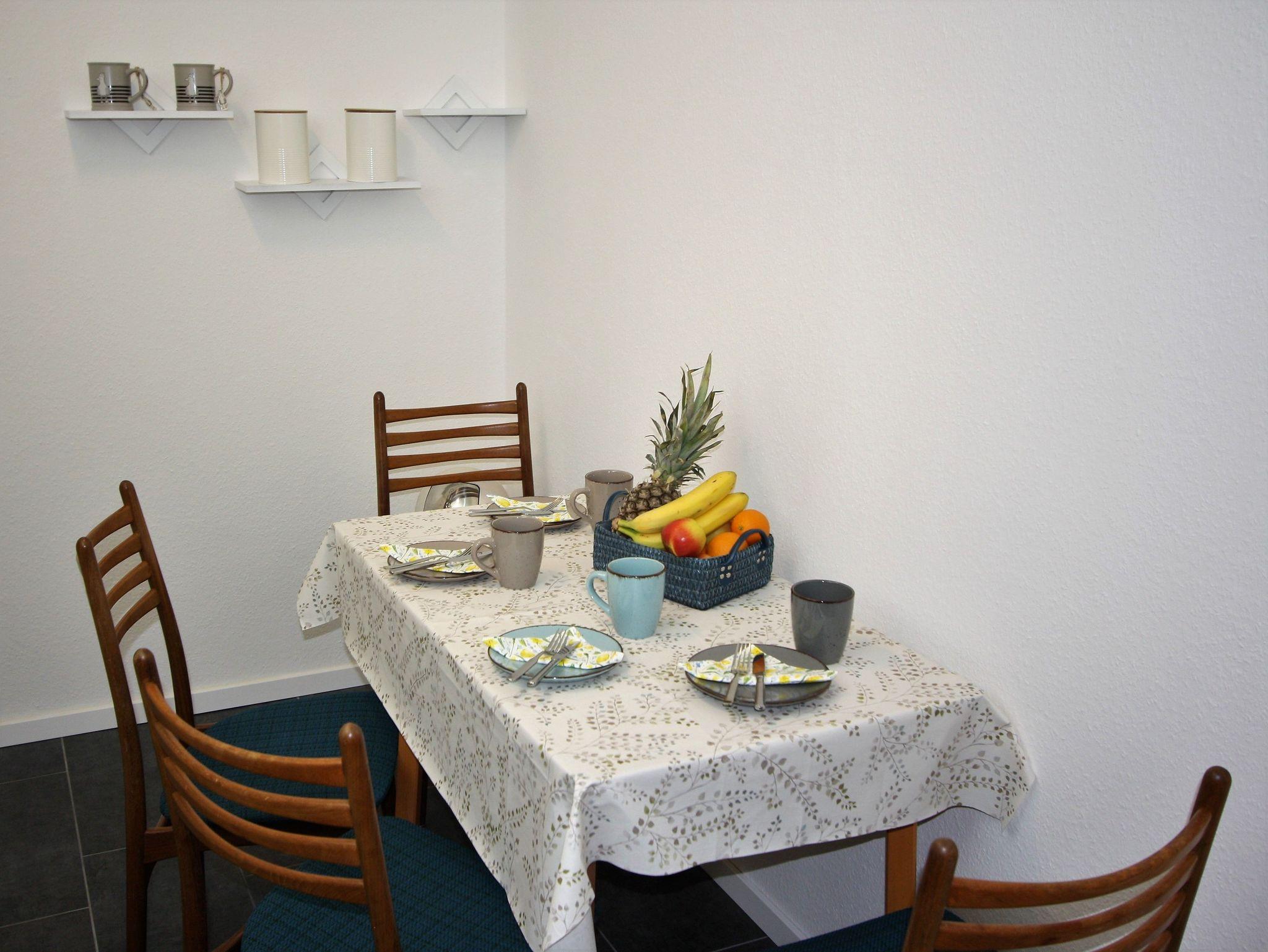 Ihre Ferienwohnung ist ein liebevoll eingerichtetes 2-Zimmer-Apartment mit gemütlichem Balkon. An das maritime Wohnzimmer schließt die offene, voll ausgestattete Küche an. Ebenfalls zur Wohnung gehört ein helles Schlafzimmer mit Doppelbett und geräumigem Kleiderschrank sowie ein modernes Bad.