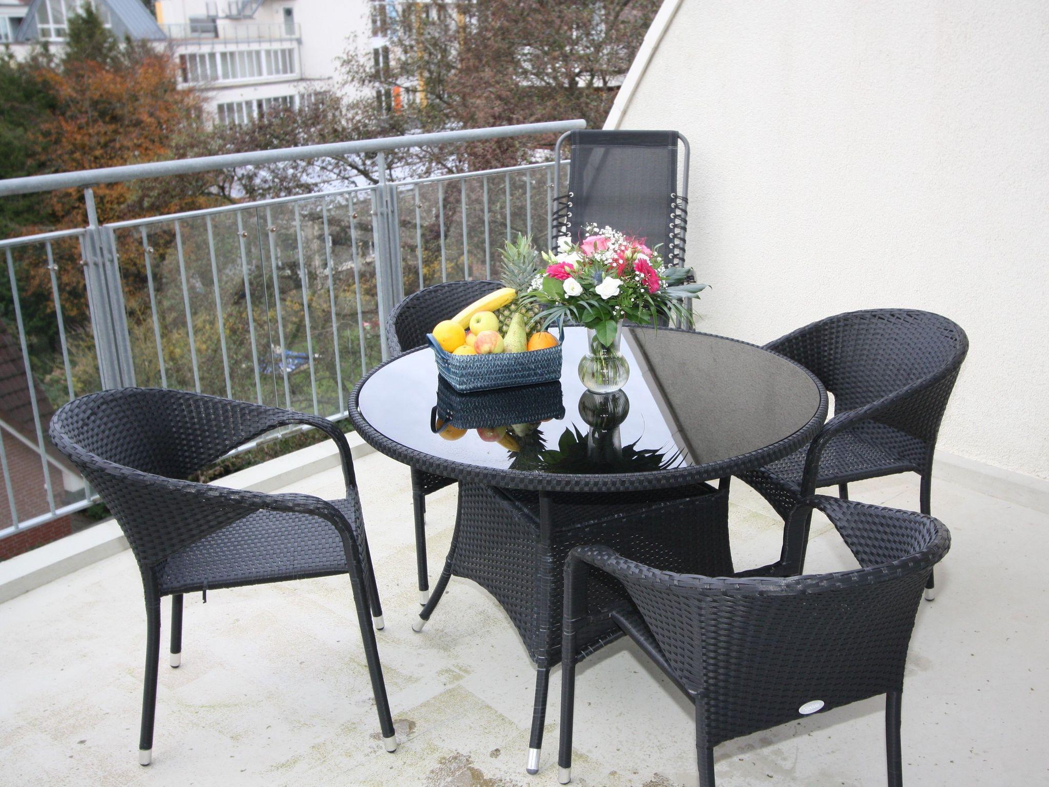 Auf dem großzügigen Balkon finden Sie einen Tisch mit gemütlichen Stühlen. Durch die westliche Ausrichtung der Wohnung können Sie nach einem Strandtag dort die Abendsonne geniessen.