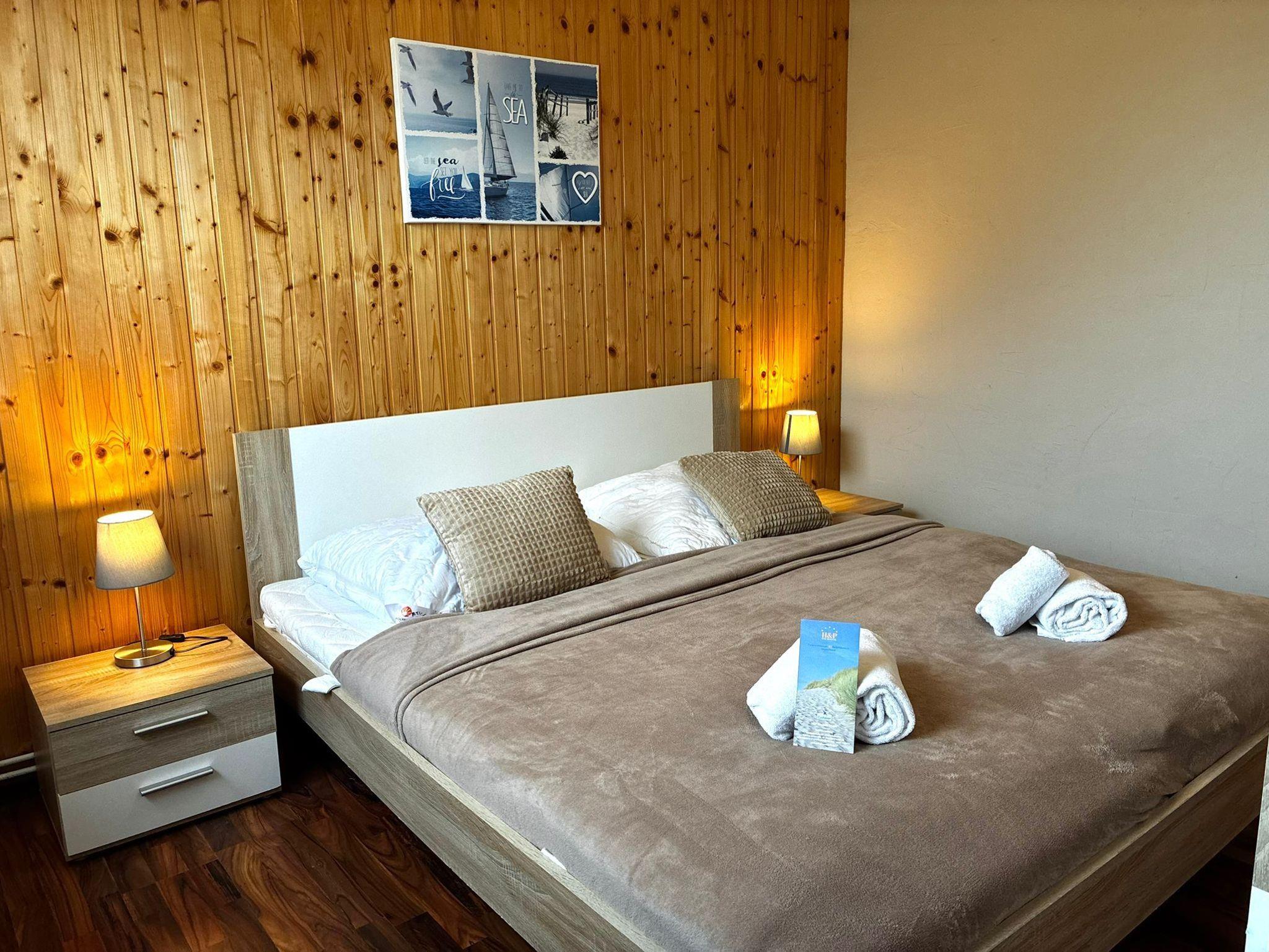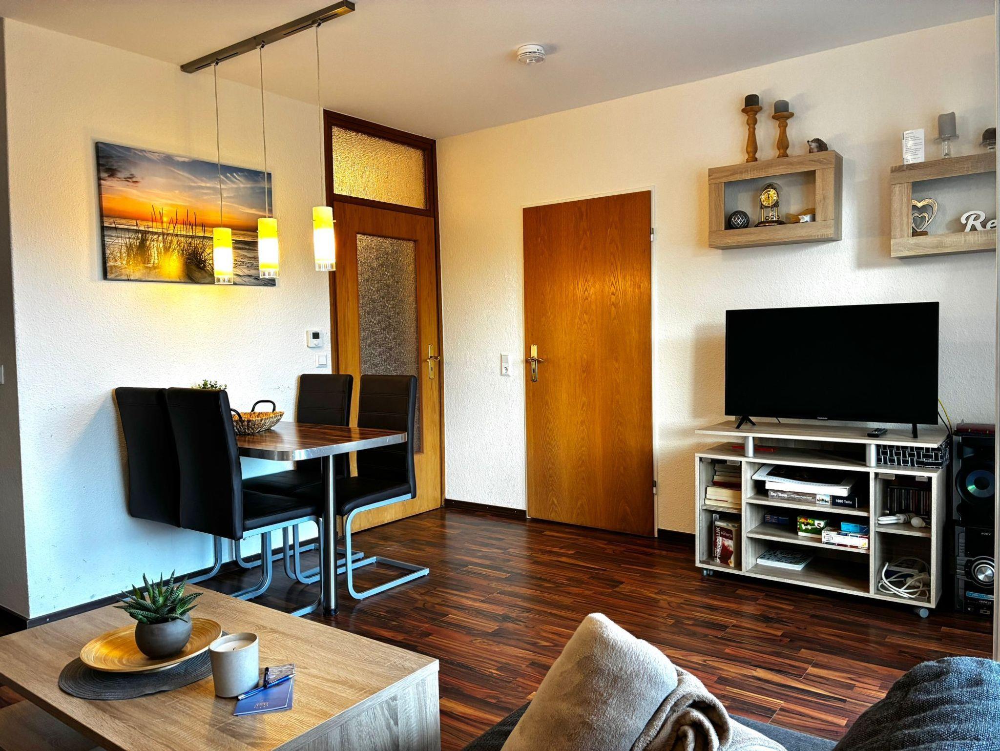 Sie wohnen in einem 3-Zimmer-Appartement im Erdgeschoss auf ca. 60 m² Wohnfläche. Ein Schlafraum mit Doppelbett, ein Schlafraum mit Etagenbett, Wohnraum mit bequemer Couchgarnitur, separater Essplatz, moderne und voll ausgestattete Einbauküche (ohne Geschirrspüler, mit Mikrowelle mit Backfuntkion), Dusche/WC, eingefasste Terrasse (Balkon), SAT-Flachbild-TV, WLAN und ein PKW-Stellplatz 005 direkt der erste Platz an der Stirnseite des Hauses.