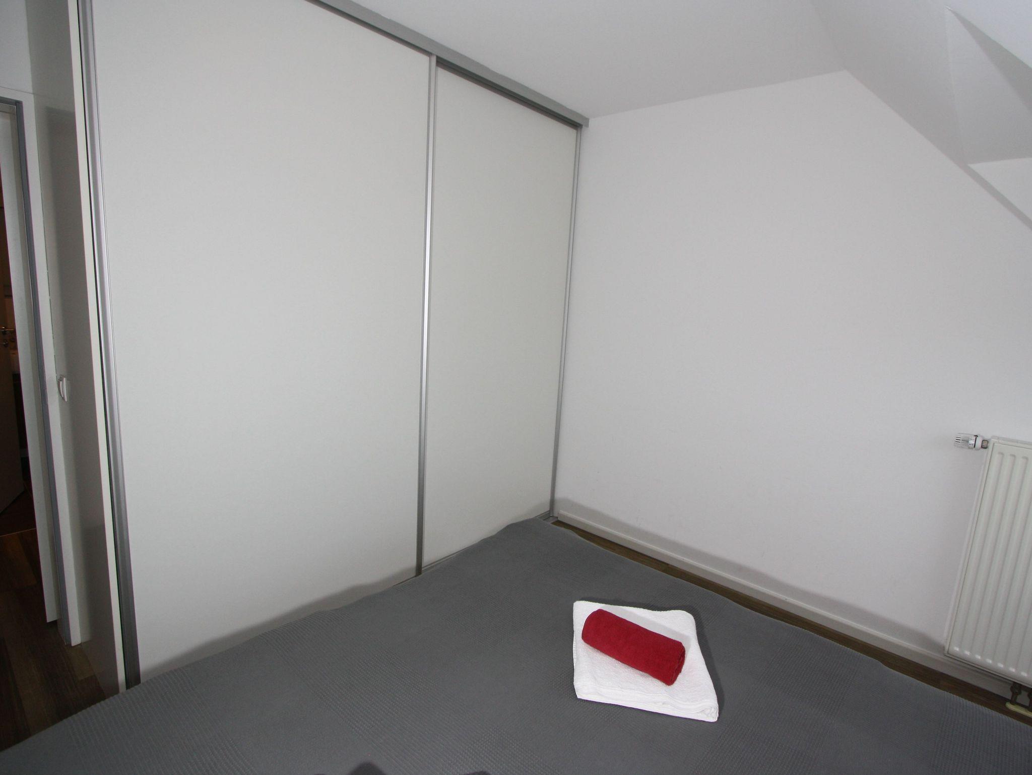 Die Wohnung verfügt über zwei separate Schlafräume auf der Eingangsetage mit jeweils zwei Betten (ein Doppelbett sowie zwei Einzelbetten), eine Schlafcouch im Wohnzimmer bietet zwei weitere Schlafgelegenheiten (Empfehlung: Belegung der Wohnung mit bis zu 4 Personen).