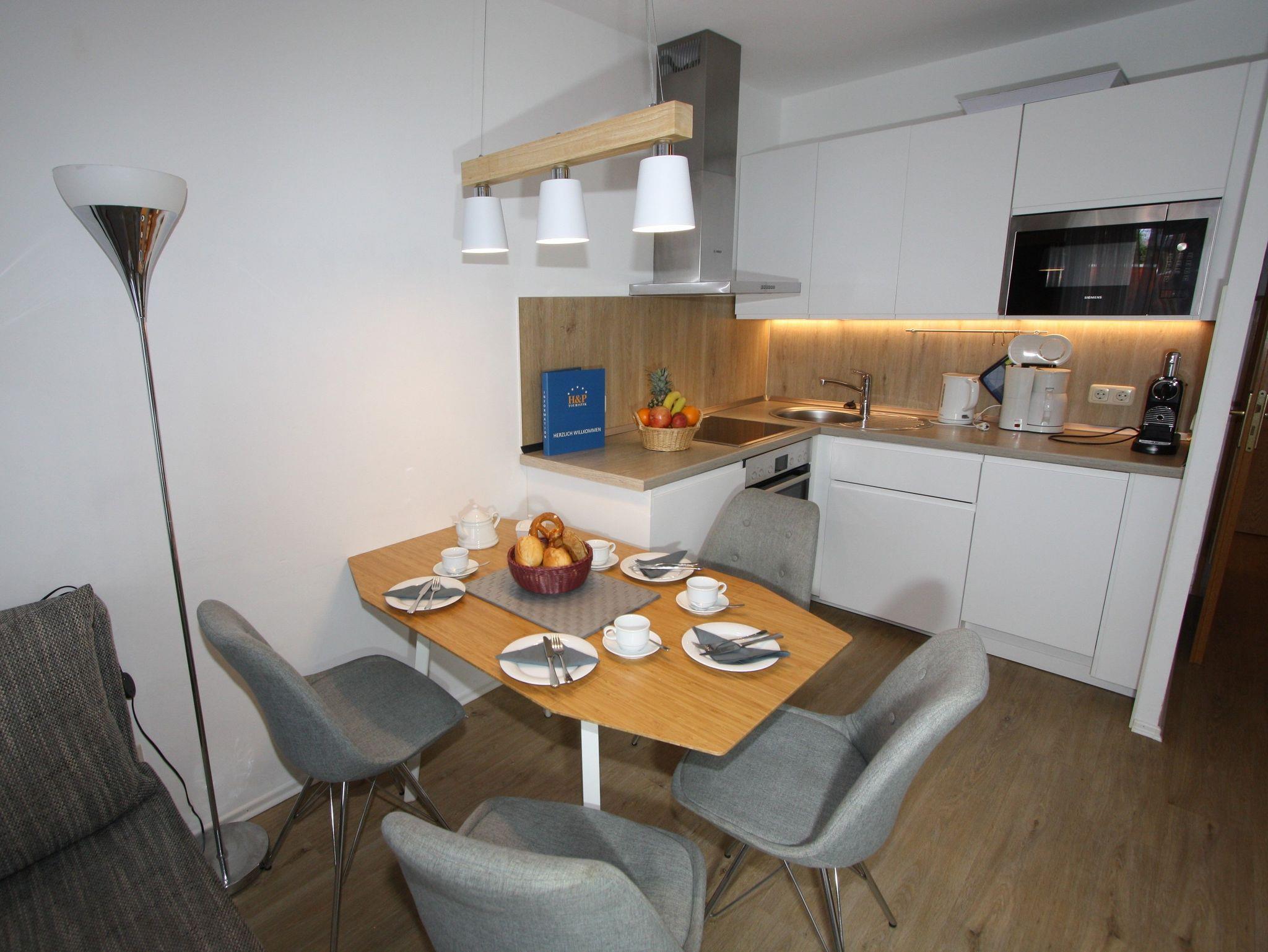 2-Zimmer-Appartement für bis zu 4 Personen auf ca.42 m². Schlafzimmer mit Doppelbett oder zwei Einzelbetten, Wohn-Schlafraum mit Doppelbettcouch, TV, separatem Essplatz, voll ausgestattetem Küchenbereich, Balkon oder Terrasse, Bad mit Dusche/WC. teilweise WLAN und PKW-Stellplatz vorhanden.