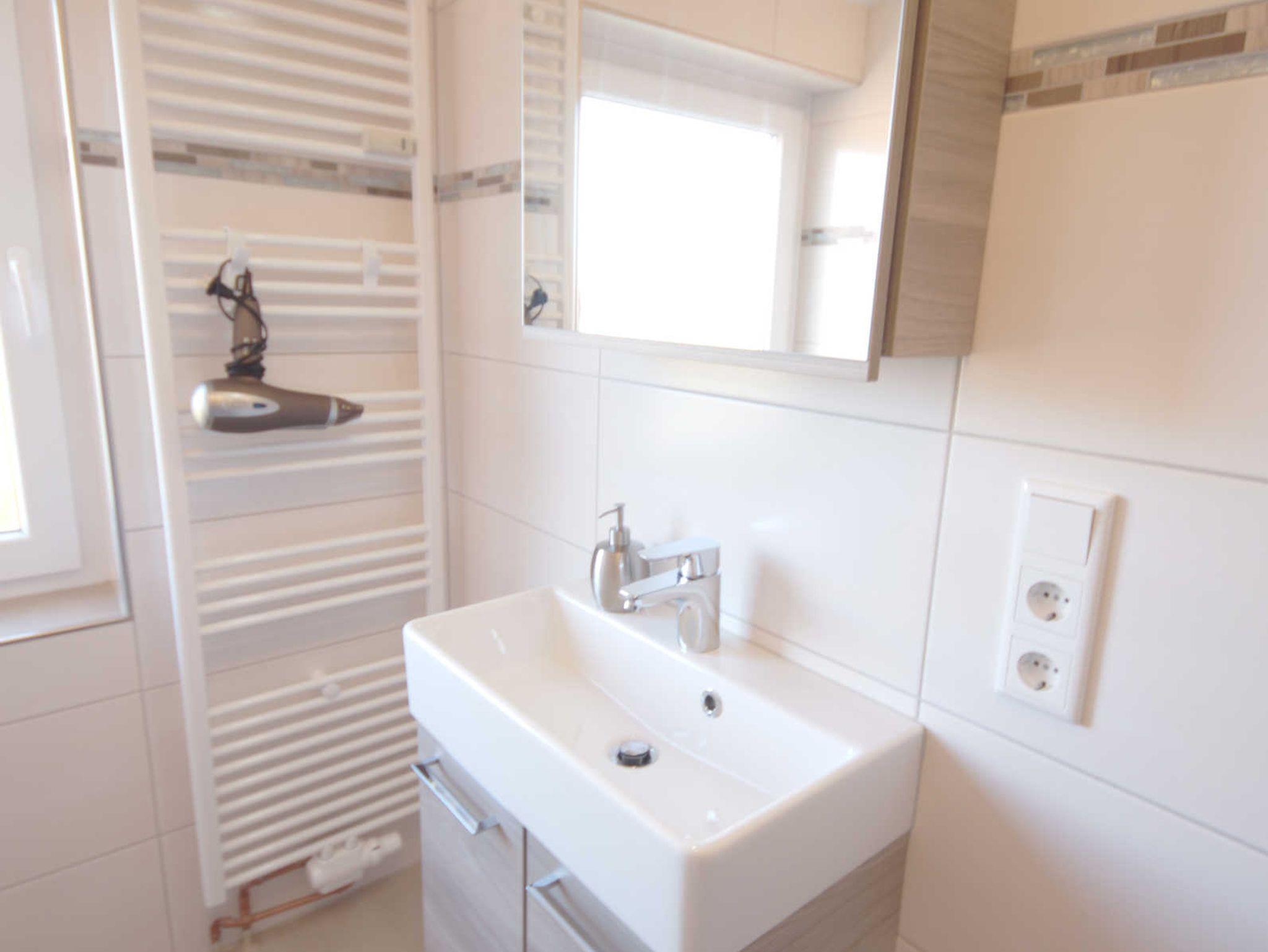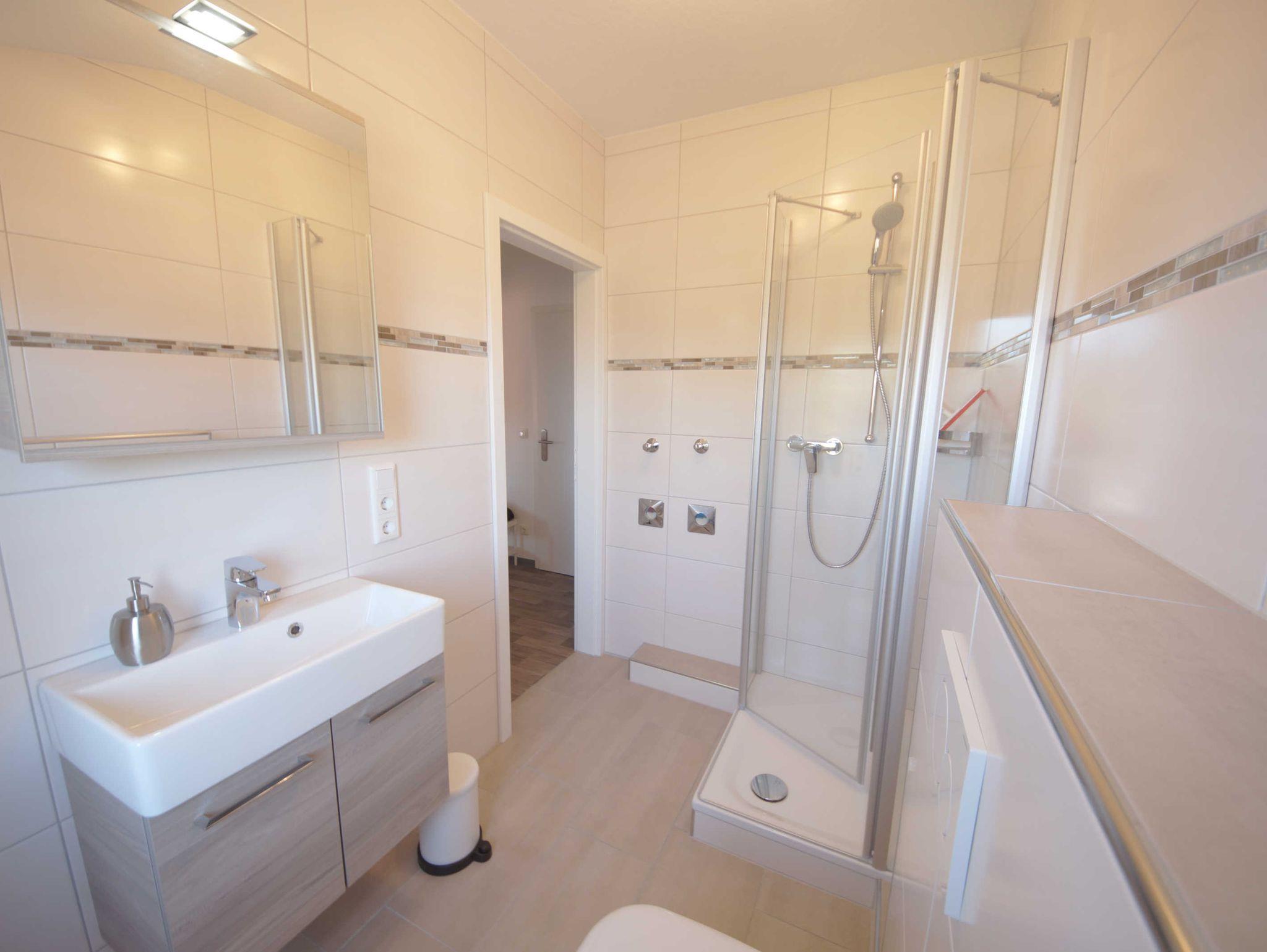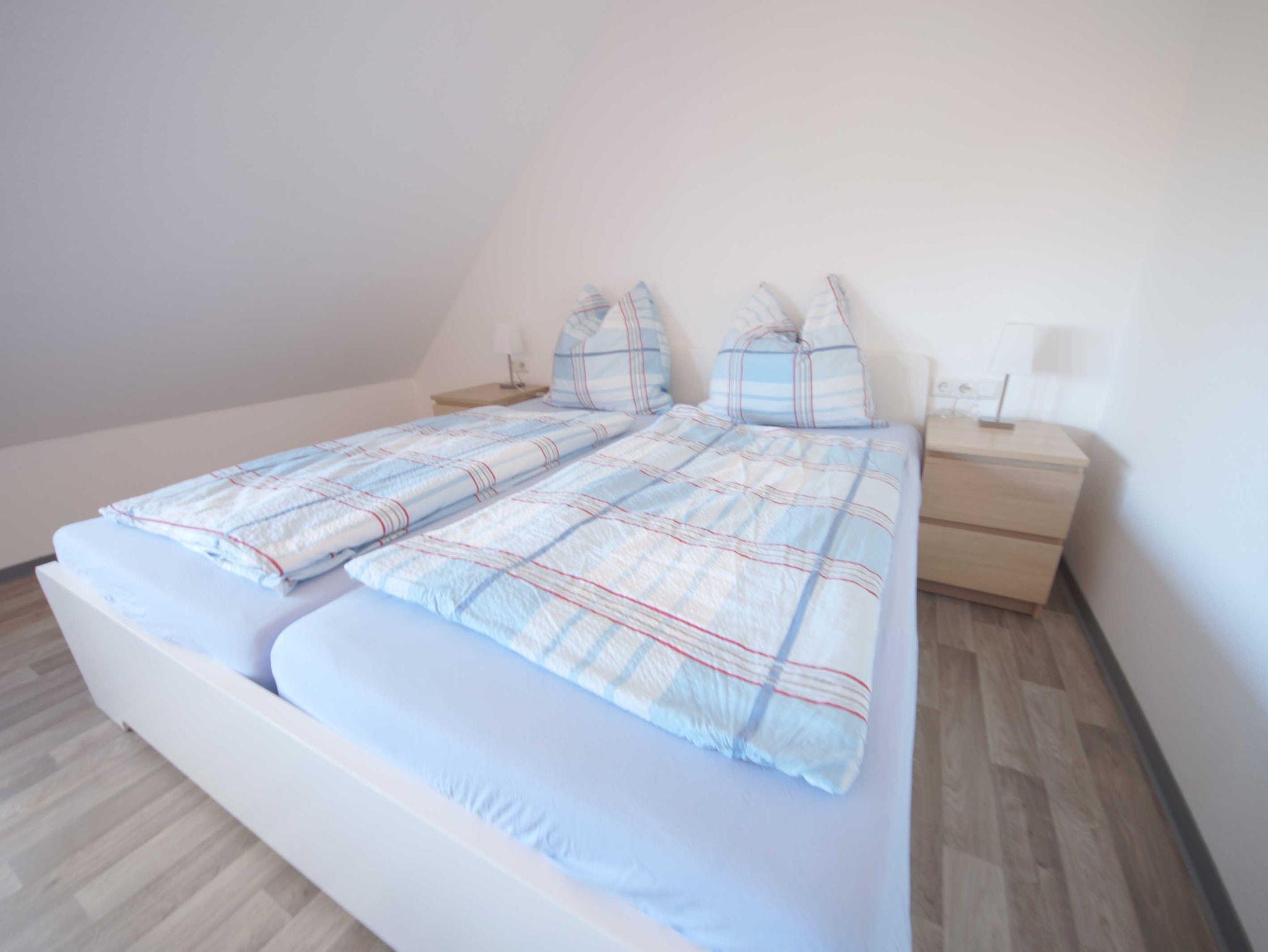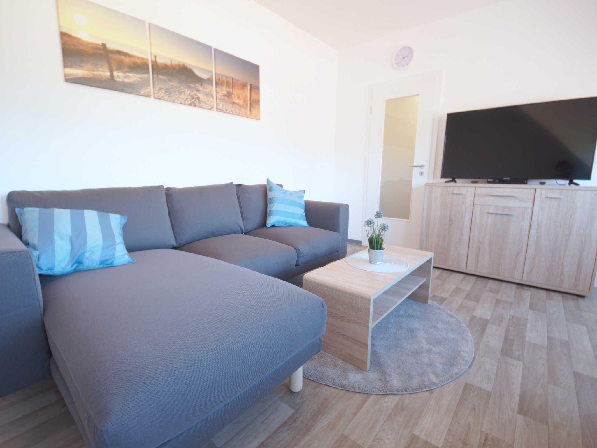 Die Wohnung bietet Platz 2 Personen. Bei Bedarf kann zusätzlich ein Kind in einem Kinderreisebett übernachten. Der Wohnraum ist ausgestattet mit einem Doppelbett, Essecke und Sofa. Das Bad ist hell und geräumig.