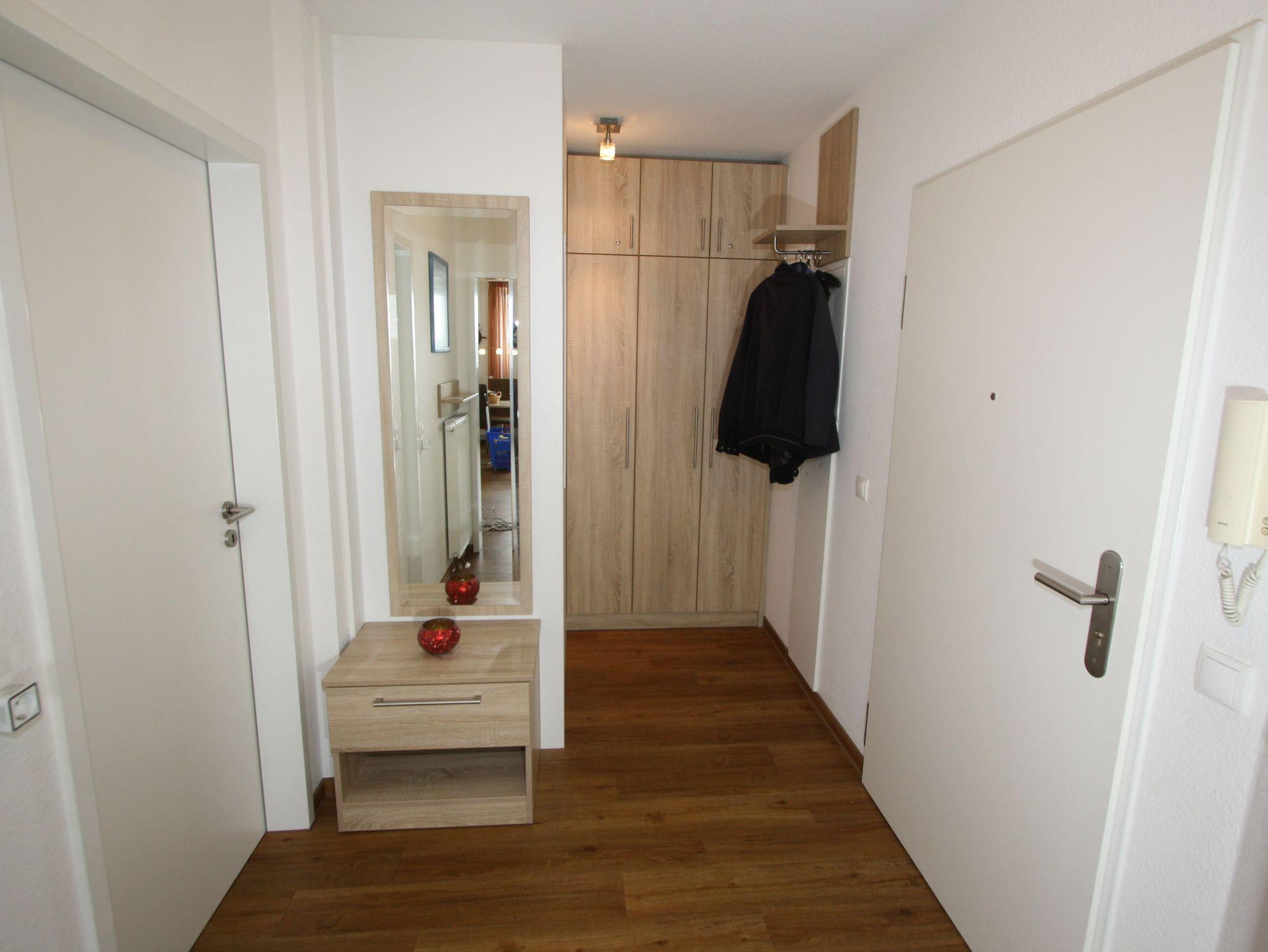Abgerundet wird die Wohnung durch Garderobe und Abstellschrank im Flur.
