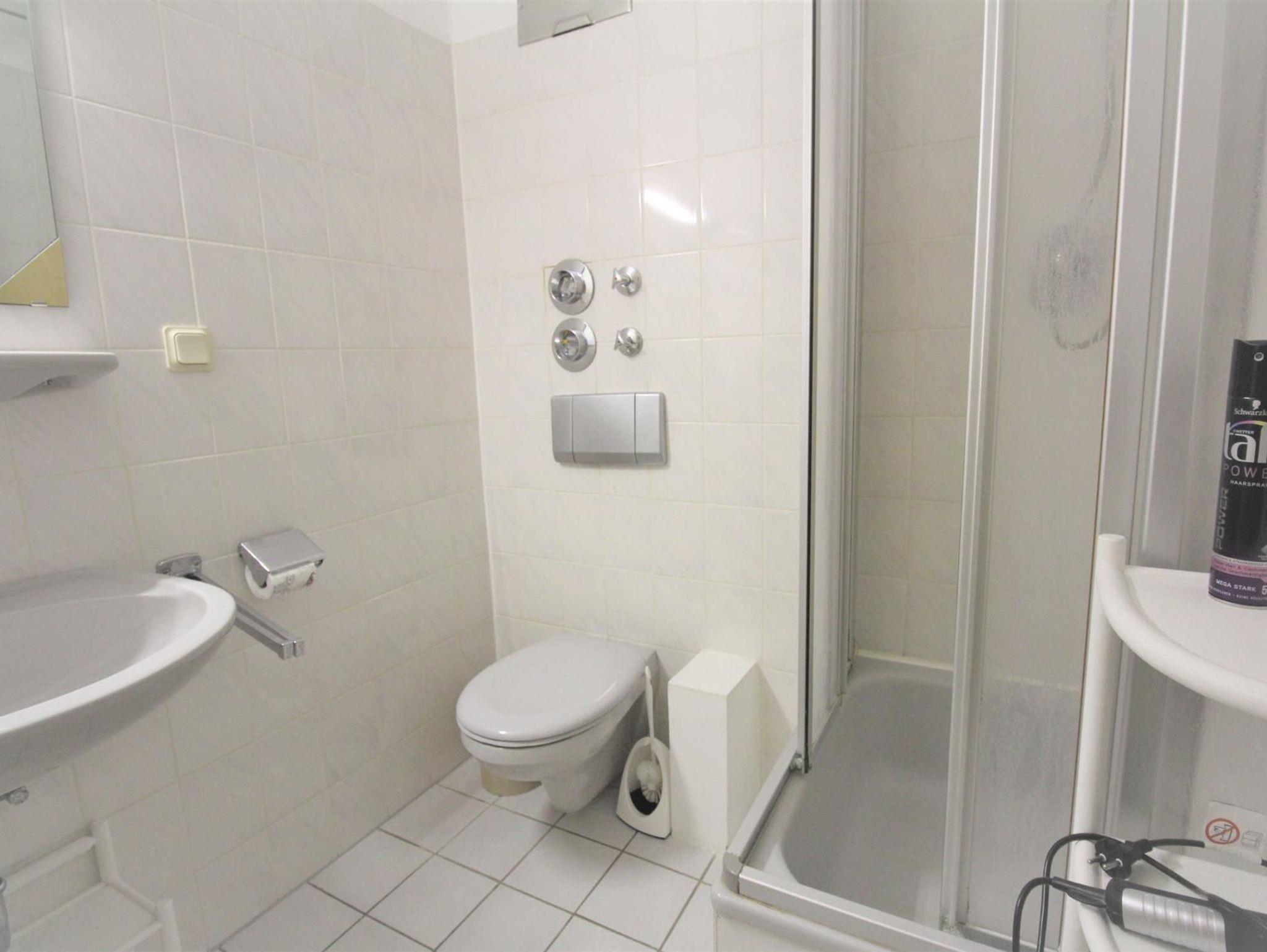 Dusche/WC, Balkon, SAT-Flachbild-TV und Telefon. PKW-Stellplatz im Außenbereich. Das Bad wurde im Frühjahr 2024 renoviert und verfügt über eine Dusche mit bodengleichen Einstieg.
