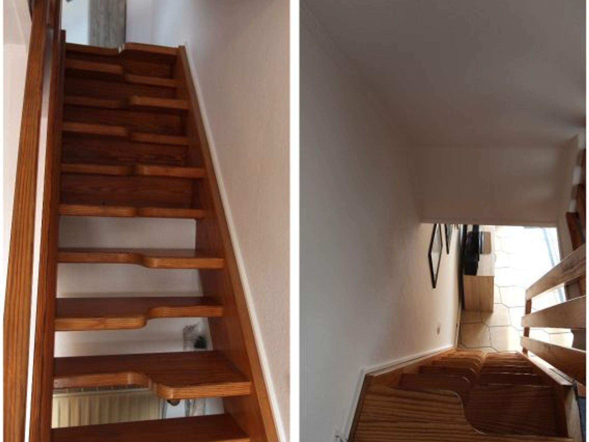 eine schmale und steile Treppe erreicht man das zum Wohnraum offene Schlafzimmer mit getrennten