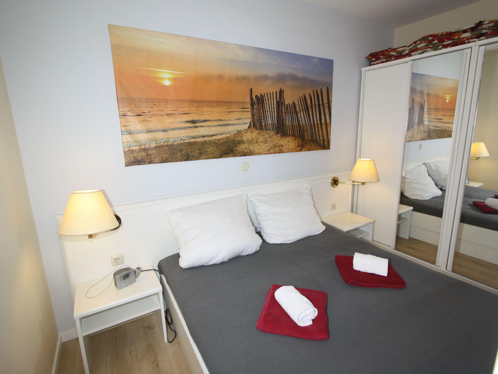 2-Zimmer-Appartement für bis zu 4 Personen auf ca.45 m². Schlafzimmer mit Doppelbett oder Einzelbetten, Wohn-/Schlafraum mit Doppelbett, Couch, TV, separatem Essplatz, voll ausgestattetem Küchenbereich, Terrasse oder Balkon, Bad mit Dusche/WC. teilweise WLAN und PKW-Stellplatz vorhanden.