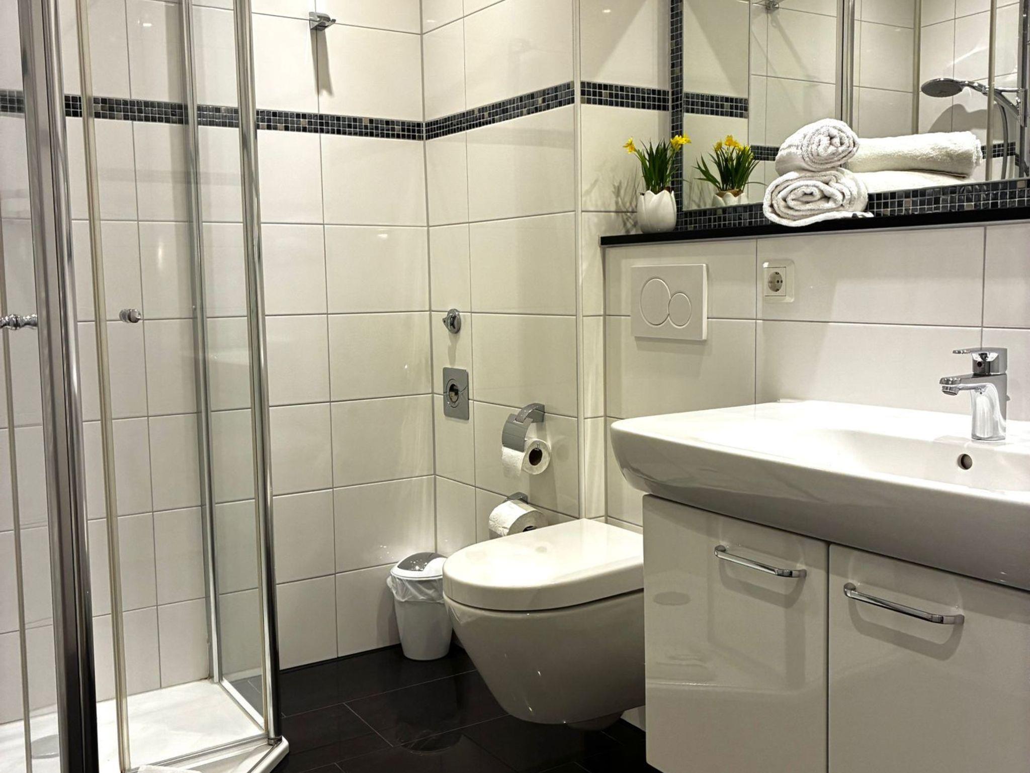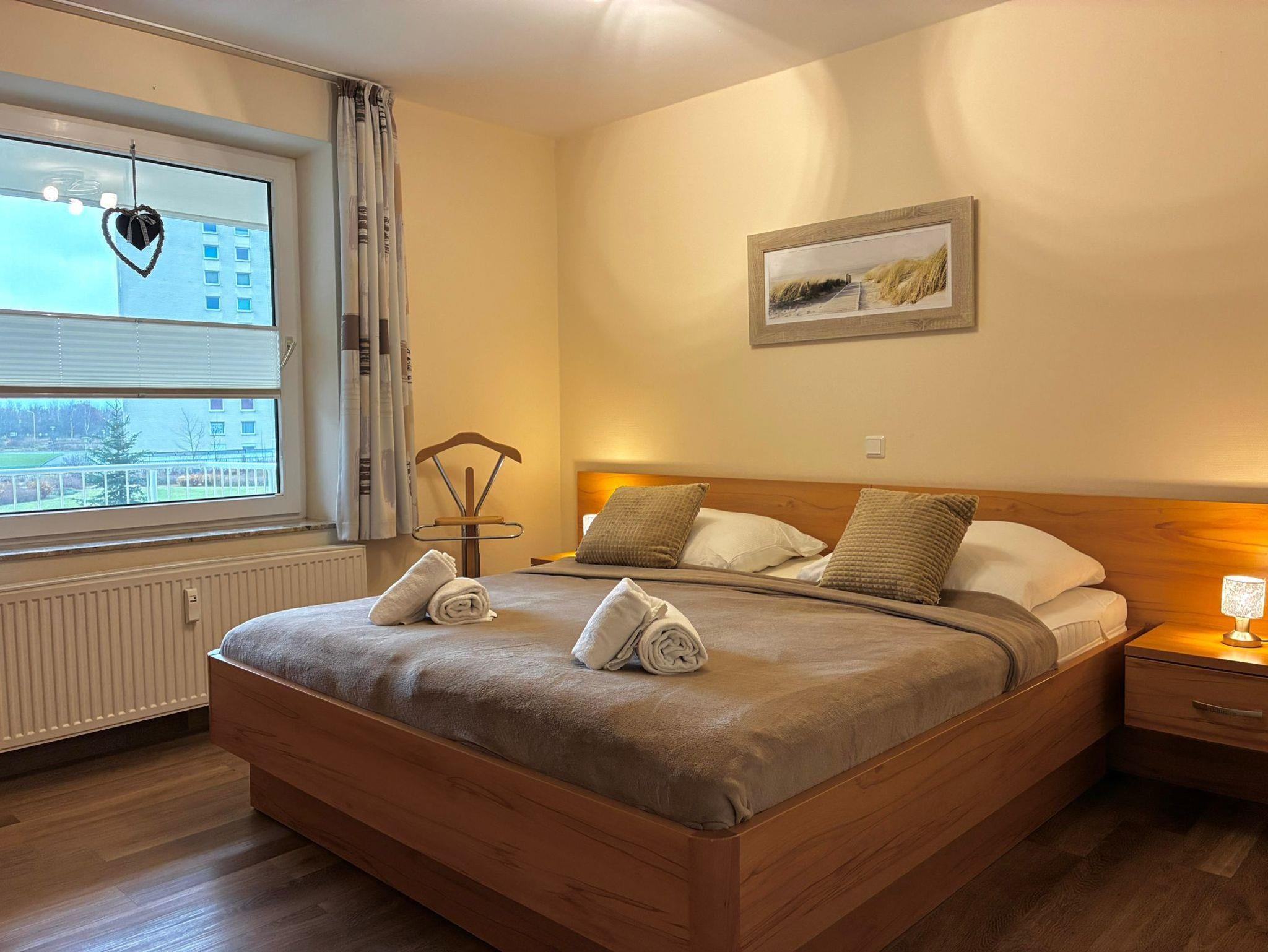 Sie wohnen in einem hochwertig eingerichteten 2-Zimmer-Appartement für bis zu 4 Personen auf ca. 60 m² im 1. Obergeschoss. Die Ferienwohnung verfügt über ein Schlafzimmer mit Doppelbett, ein Wohn-/Schlafraum mit Doppelbettcouch, einen separaten Essplatz und einen voll ausgestatteten Küchenbereich mit Geschirrspüler, Mikrowelle und Senseo Kaffeepadmaschine. Außerdem über Dusche/WC, Balkon, Kabel-LCD-TV, Blu-ray-Player, WLAN und Safe.