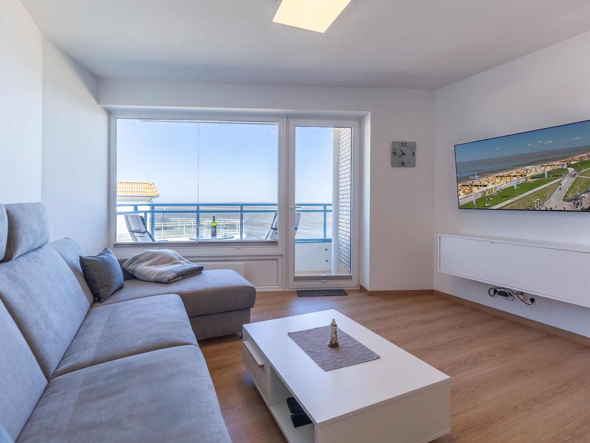 Die 2-Zimmer Ferienwohnung ist der optimale Logenplatz für 2 Personen. Egal ob Sie am Esstisch oder auf dem Sofa sitzen, immer genießen Sie den atemberaubenden Blick auf Nordsee, Wattenmeer und Insel Neuwerk. Am Abend können Sie bei einem Glas Wein traumhafte Sonnenuntergänge beobachten und einen erlebnisreichen Tag ausklingen lassen.