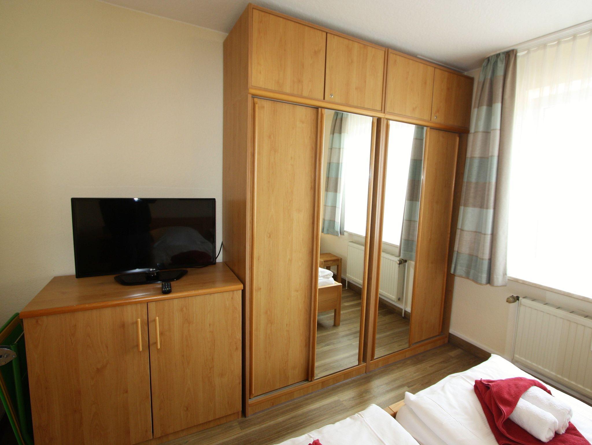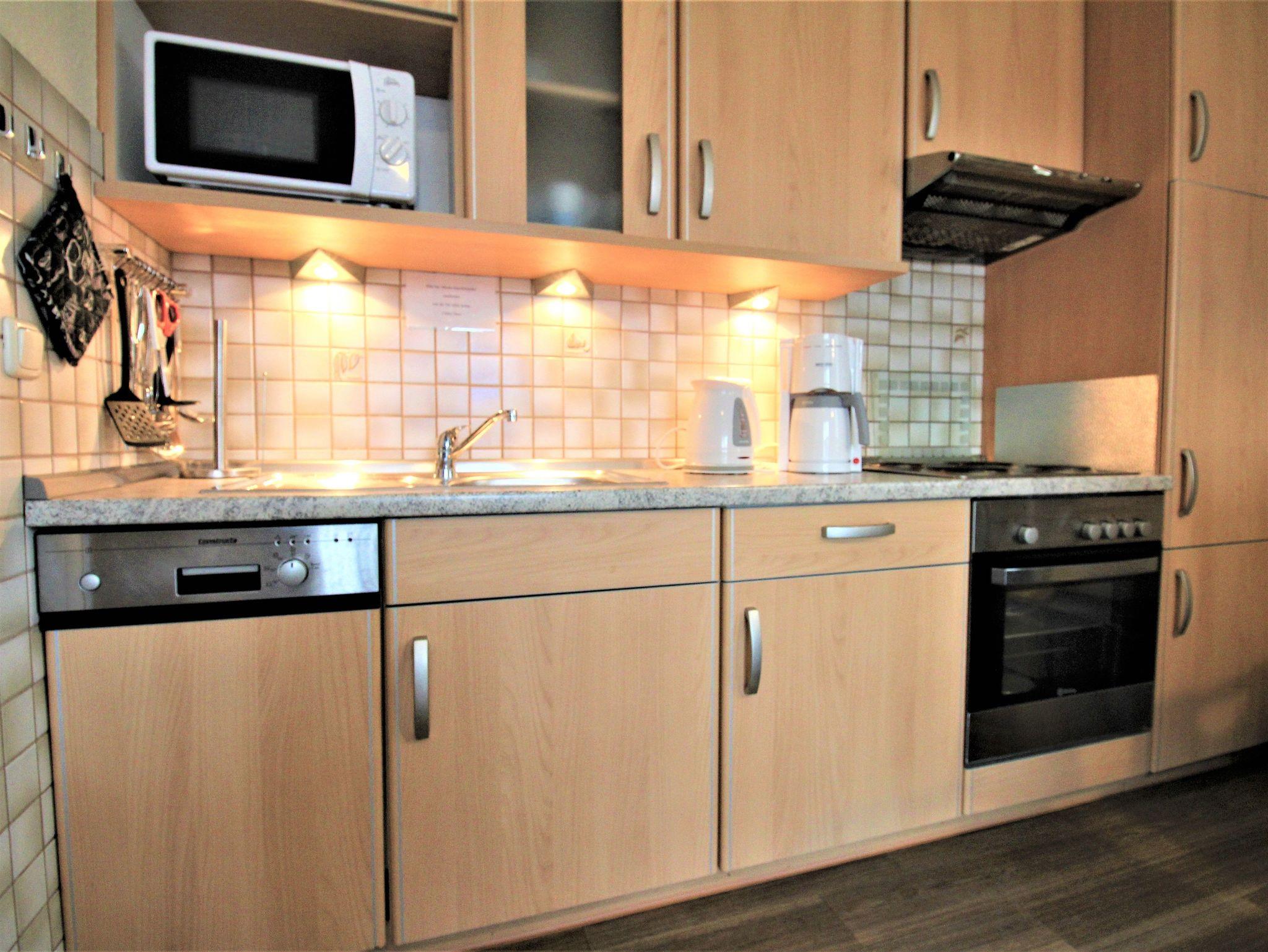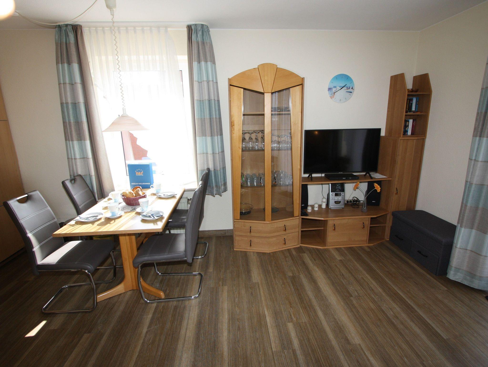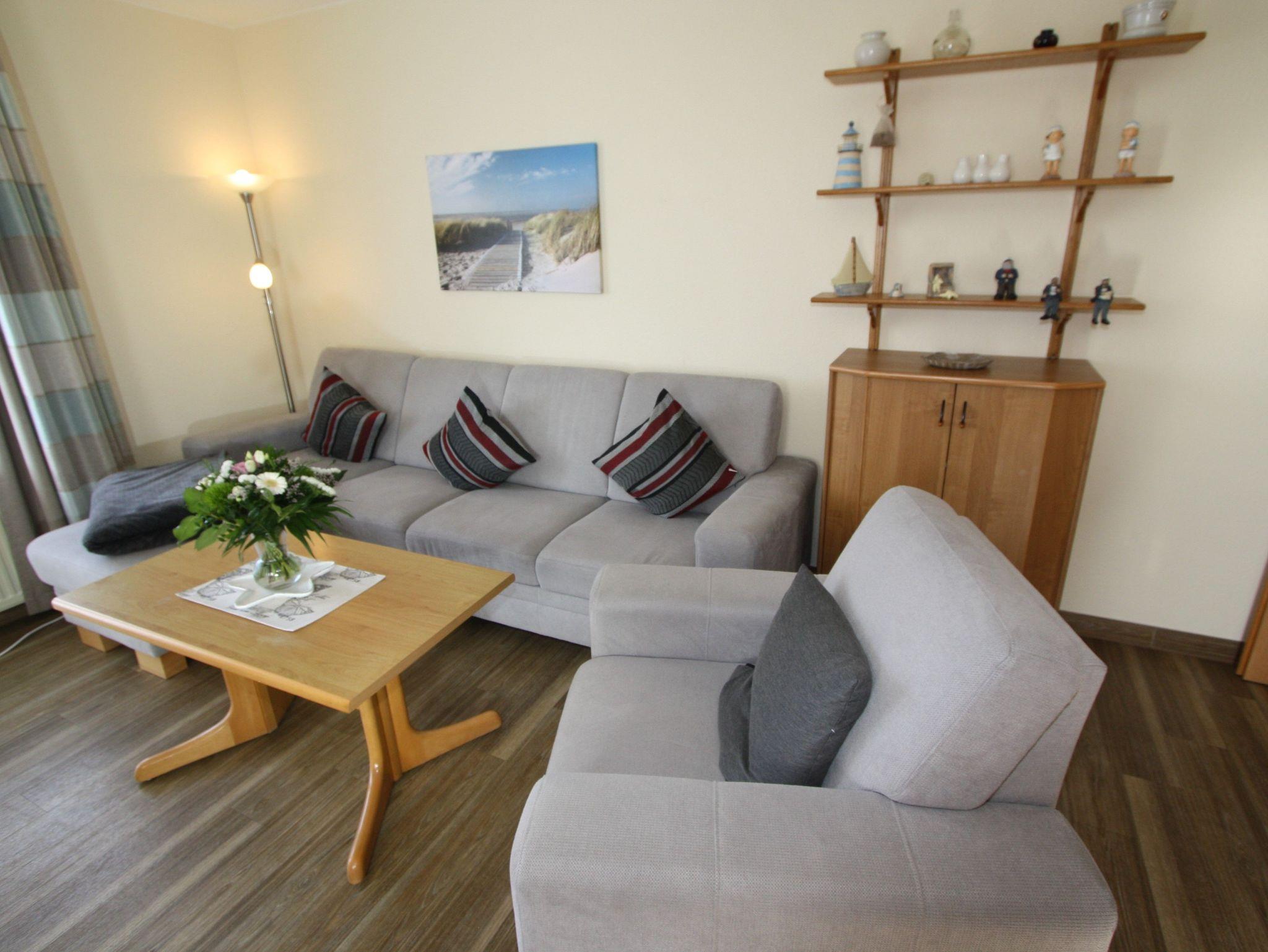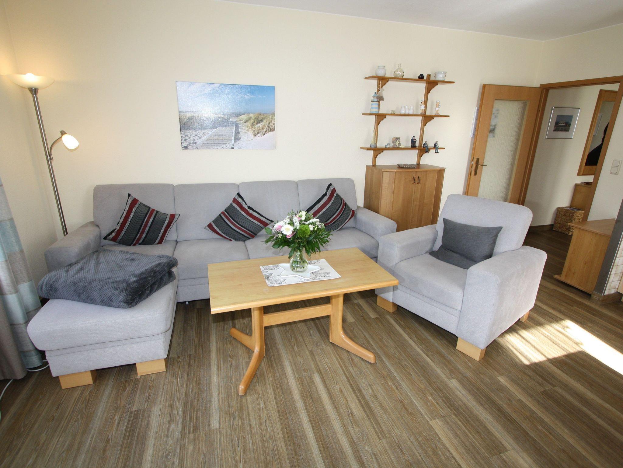 Sie wohnen in einem 2-Zimmer-Appartement für bis zu 4 Personen auf ca. 57 m² Wohnfläche im 3. OG. Schlafzimmer mit Doppelbett und TV-Gerät ausgestattet, separater Essplatz mit angrenzendem Wohnbereich und einer hochwertigen Schlafcouch, voll ausgestatteter Küchenbereich mit Geschirrspüler und Mikrowelle, Dusche/WC, großer Süd-/Westbalkon und SAT-TV.