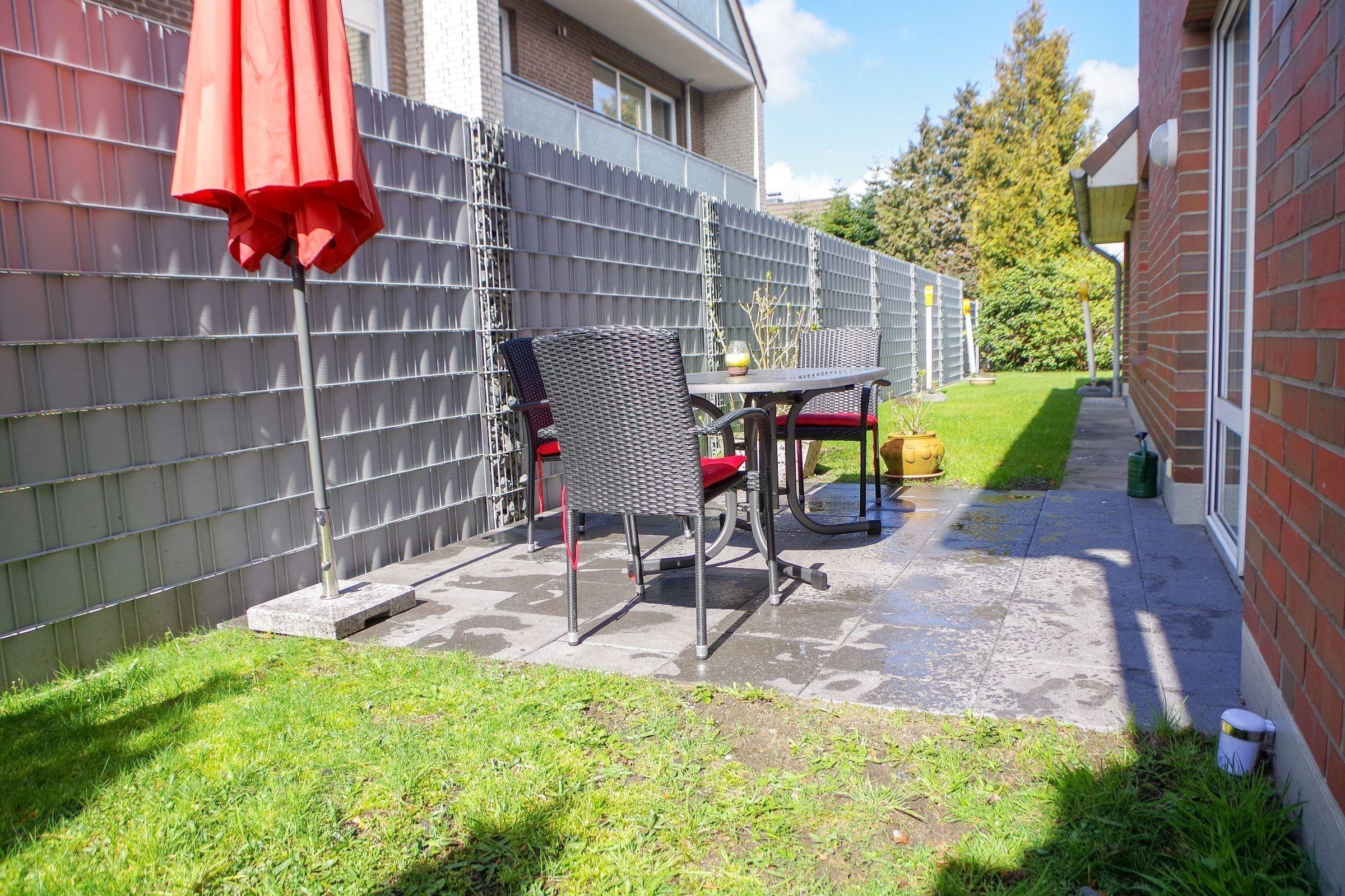 Die strandnahe, gemütliche Ferienwohnung für 4 Personen besticht durch ihren großzügigen Außenbereich. Die große Terrasse im Erdgeschoss bietet ausreichend Platz und ist mit Gartenmöbeln ausgestattet, um entspannte Stunden im Freien zu verbringen. Zusätzlich besteht die Möglichkeit, den gemeinschaftlich nutzbaren Garten zu nutzen, der ideal für Familien ist.