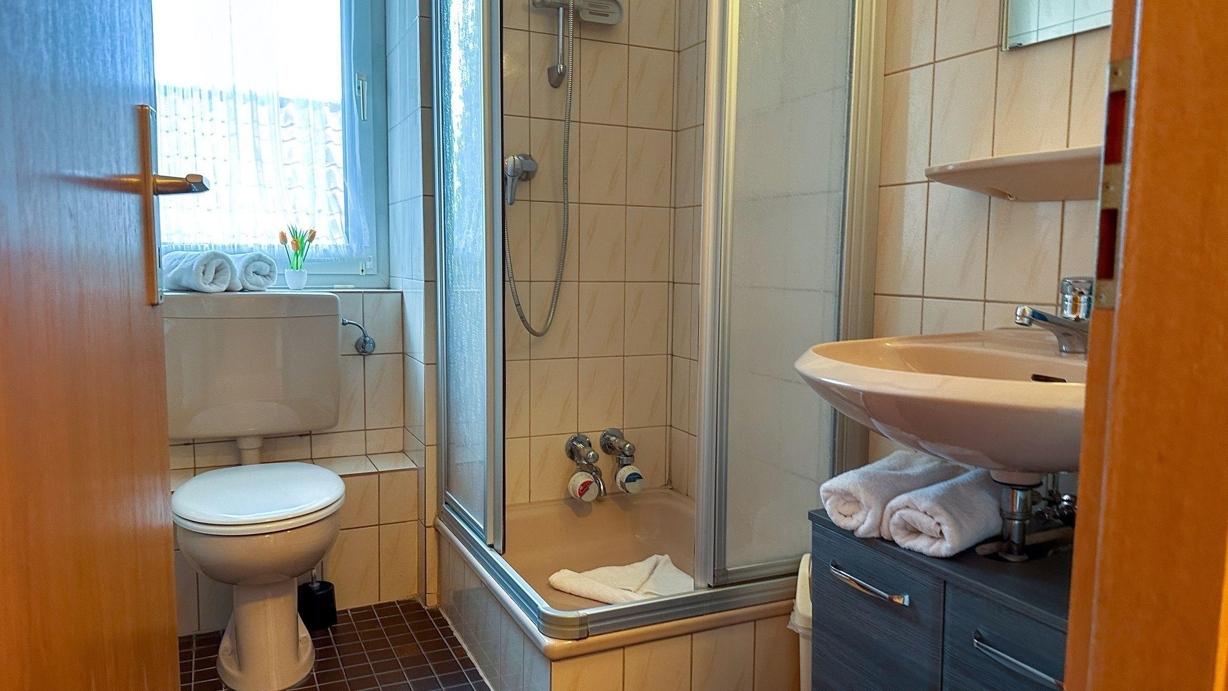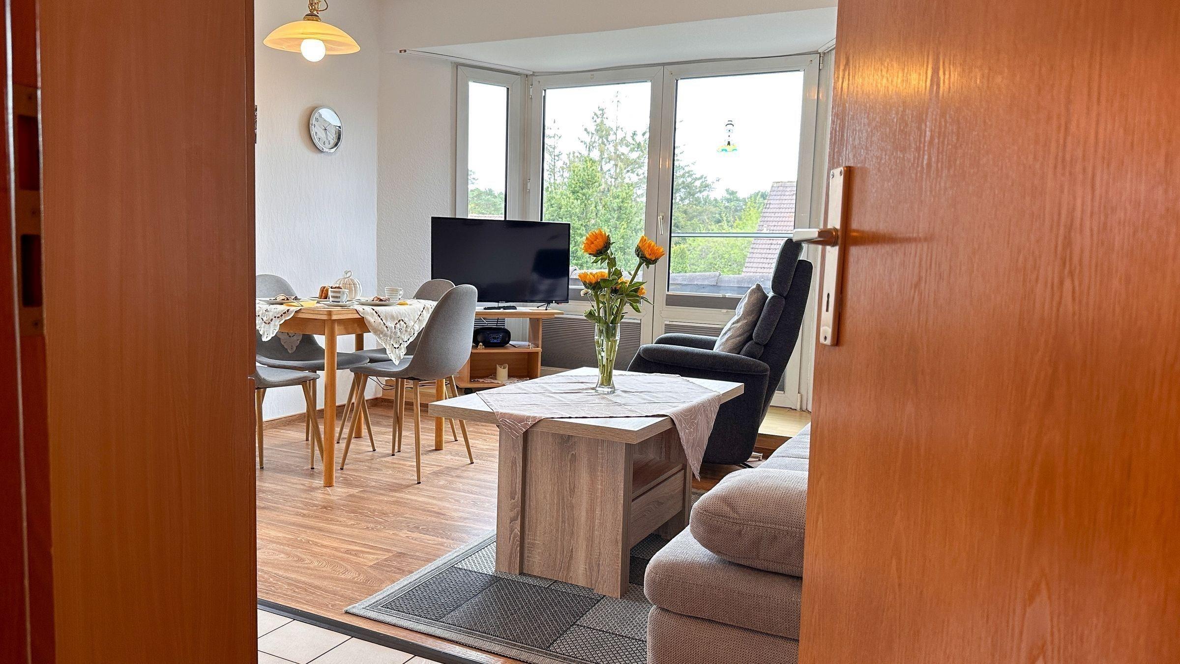 Die Ferienwohnung Nr. 10 im Haus Nige Ooge ist ein gemütlicher Rückzugsort im 1. Obergeschoss mit einer Fläche von 47 m² und Platz für bis zu vier Gäste. Die Unterkunft bietet ein Schlafzimmer mit Doppelbett sowie einen lichtdurchfluteten Wohnbereich, der mit einem Schlafsofa und einer voll ausgestatteten Küche kombiniert ist. Der Esstisch lädt zu gemeinsamen Mahlzeiten ein, während ein bequemer Sessel zum Entspannen einlädt. Ein Badezimmer mit Dusche, WC, Waschbecken und Haartrockner sorgt für nötlichen Komfort. Eine gemeinschaftlich nutzbare Waschmaschine im Haus ermöglicht eine unkomplizierte Wäschepflege. Zudem steht ein Tiefgaragenstellplatz zur Verfügung, während weitere Parkmöglichkeiten vor dem Haus vorhanden sind. Der ca. 700m entfernte Strand ist ebenfalls leicht erreichbar.
