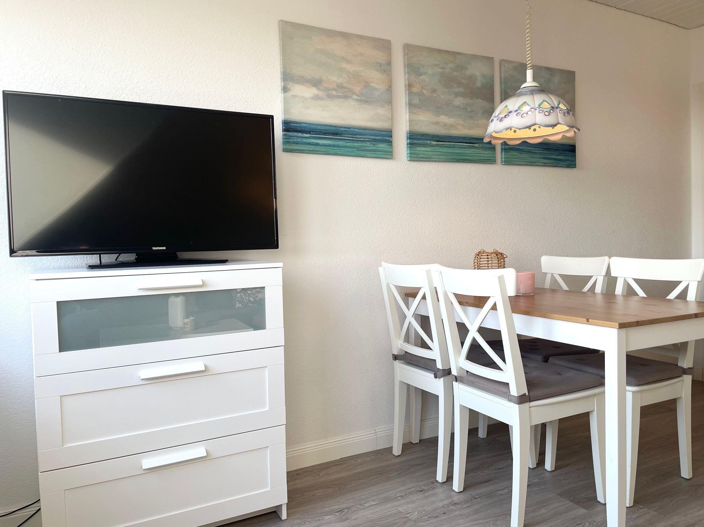 Im Haus Ingeborg erwartet die Gäste eine charmante Ferienwohnung im ersten Stock, die auf 40 m² Platz für bis zu vier Personen bietet. Die Unterkunft verfügt über ein gemütliches Schlafzimmer sowie einen offenen Wohnbereich, der mit einer voll ausgestatteten Küche und einem einladenden Esstisch kombiniert ist. Zur Ausstattung gehören ein 4-Platten-Herd, ein Backofen und eine Spülmaschine, die den Küchenaufenthalt erleichtern. Im Wohnbereich sorgt ein komfortables Sofa mit TV für Entspannung nach einem erlebnisreichen Tag. Für die Gäste steht ein gemeinschaftlich genutzter Garten mit bequemen Gartenmöbeln und einem Grill zur Verfügung. Eine Waschmaschine und ein Wäschetrockner sind gegen Gebühr im Nachbarhaus verfügbar. Nur 500 Meter entfernt liegt der schöne Sandstrand, ideal für einen abwechslungsreichen Urlaub an der Nordsee.