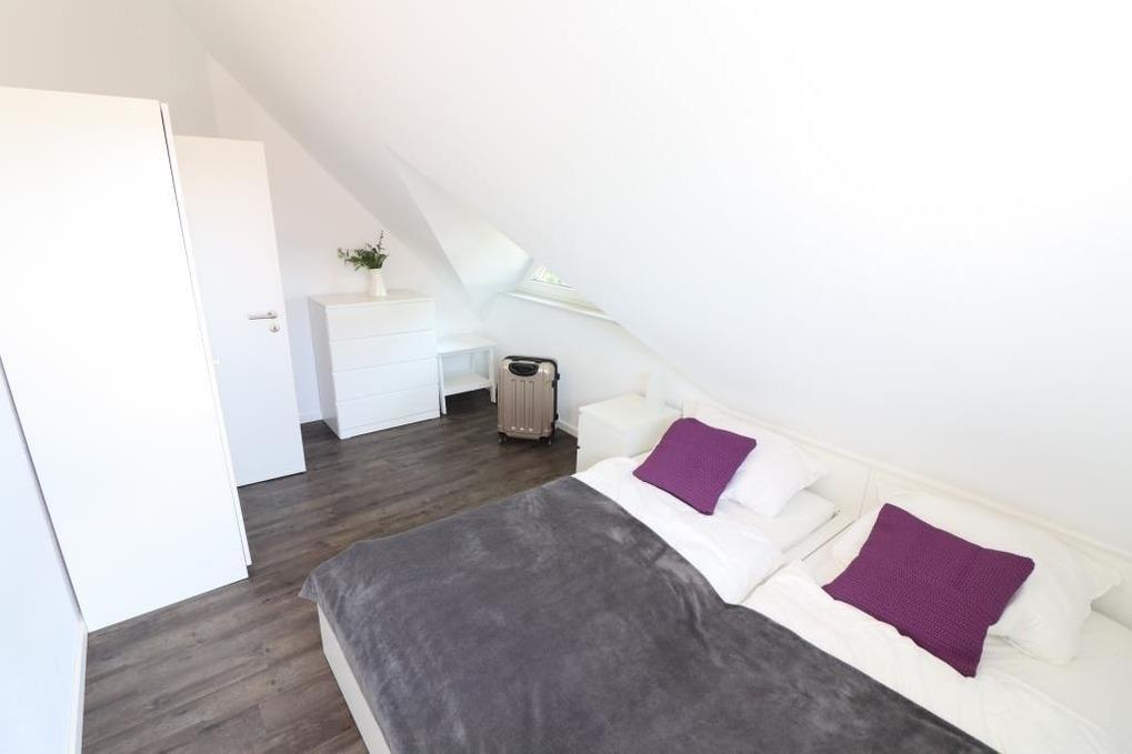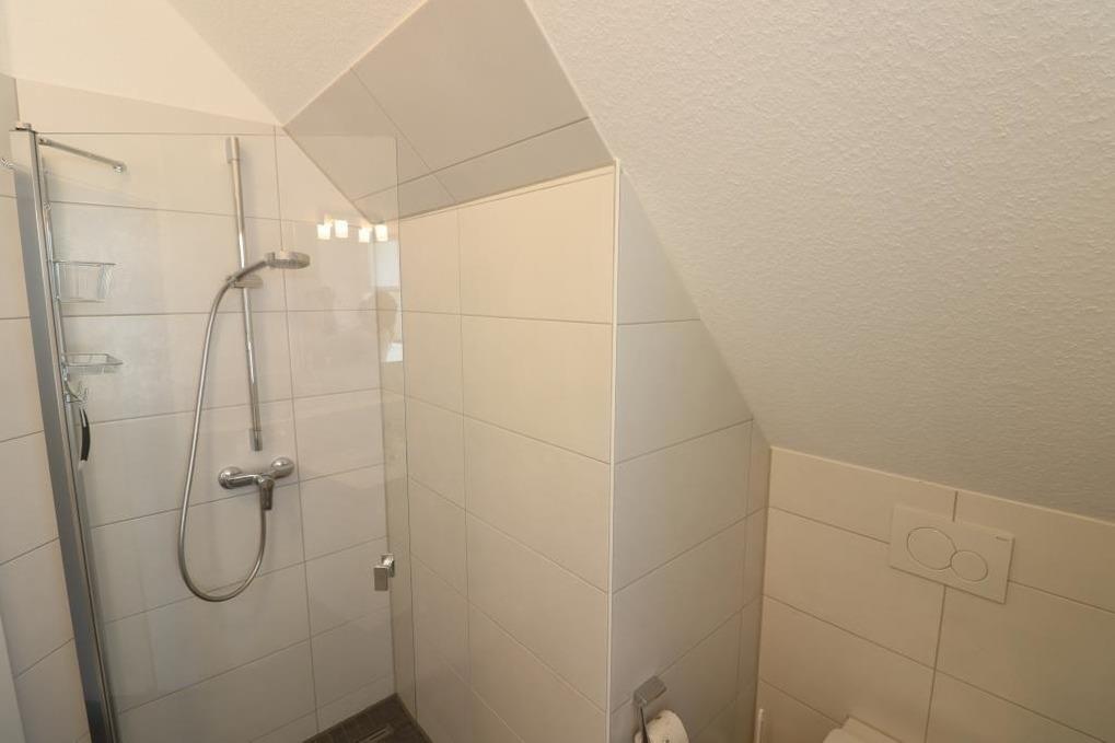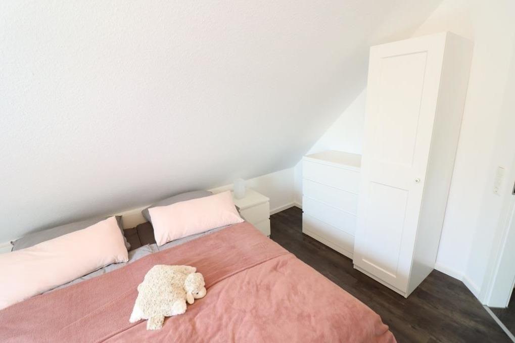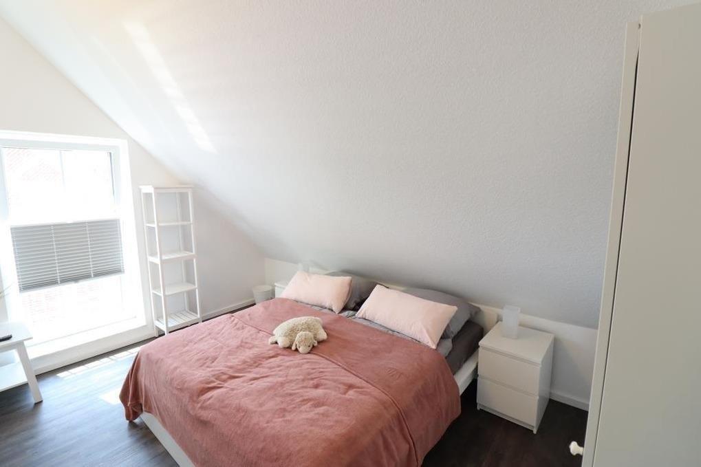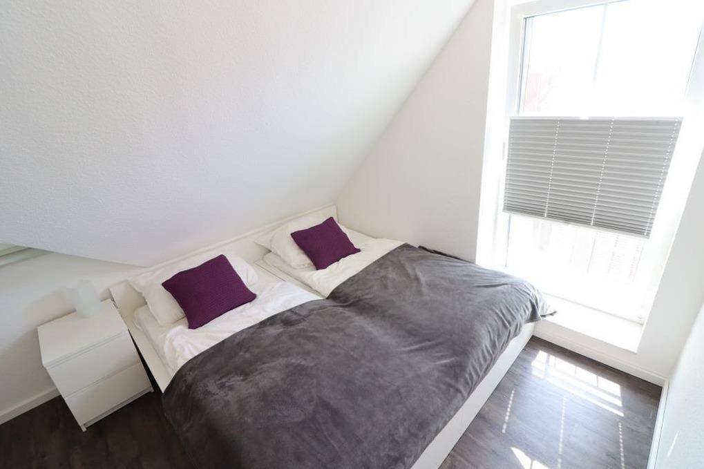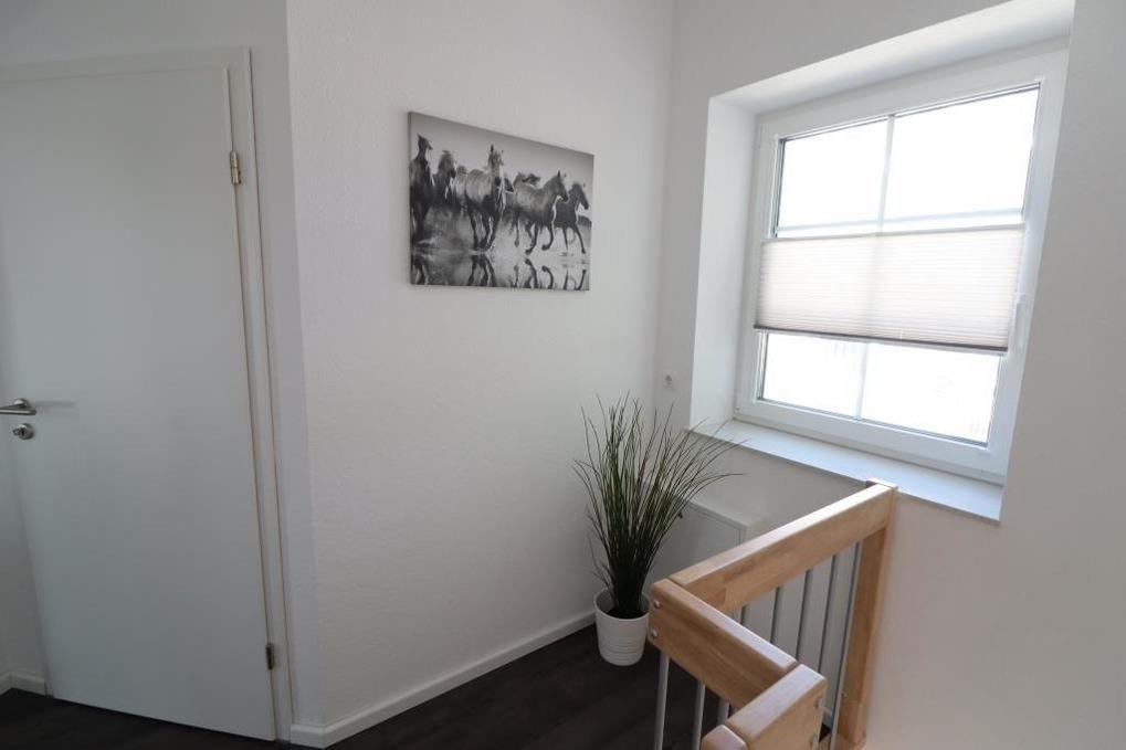 Im Erdgeschoss finden Sie ein Gäste-WC, einen gemütlichen Wohnraum mit einer hochwertigen Küchenzeile. Außerdem befindet sich im Abstellraum eine Waschmaschine und ein Trockner, die Sie kostenlos nutzen dürfen. Im Obergeschoss stehen Ihnen 2 Schlafräume (1x ein Doppelbett und 1x 2 Einzelbetten) sowie ein schönes Badezimmer mit Dusche / WC zur Verfügung. Fliegengitter sind an den Fenstern vorhanden.