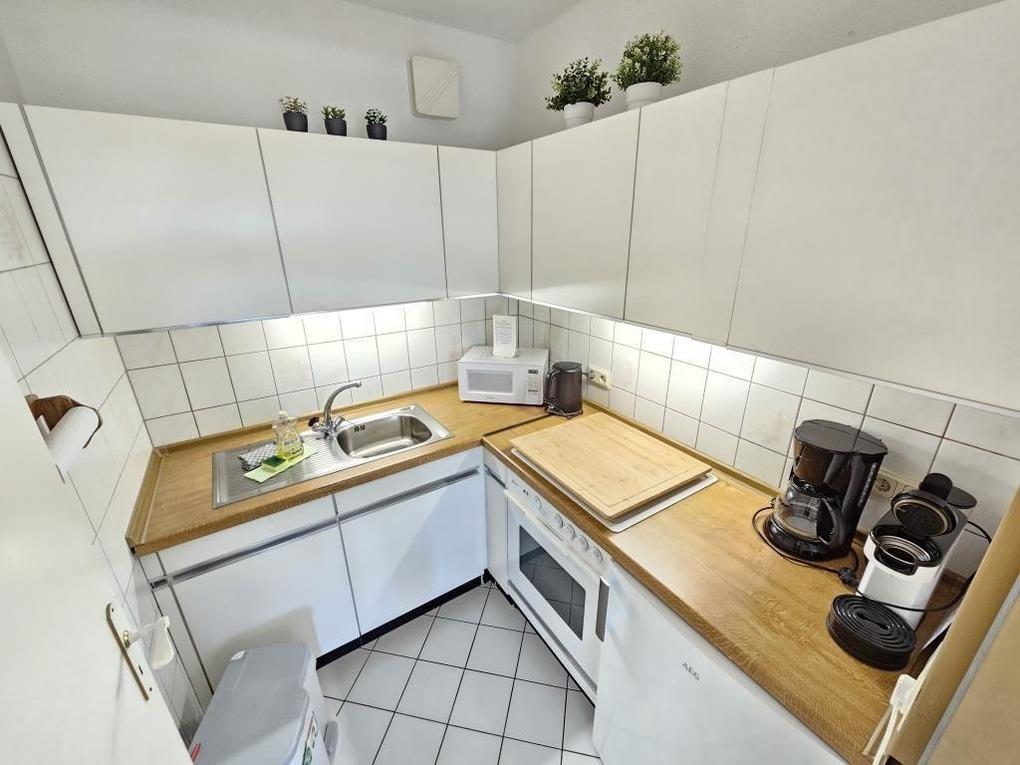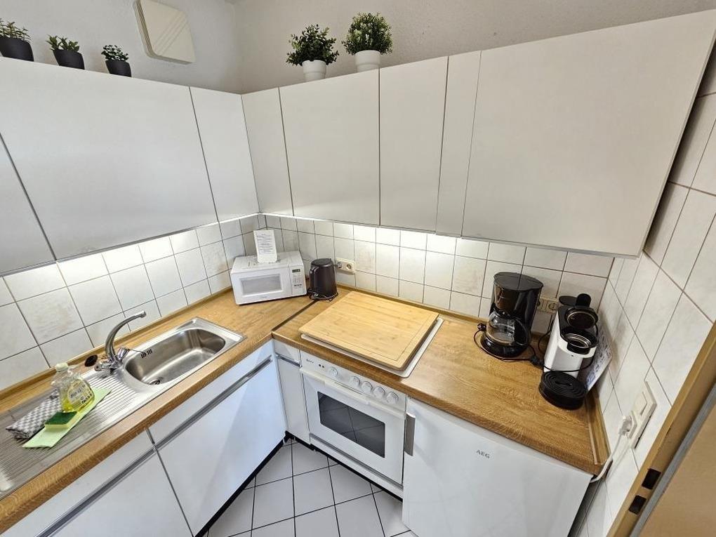 Die Ferienwohnung verfügt über einen Schlafraum mit 1 Doppelbett, 1 Wohnschlafraum mit Schlafsofa (1,60m x 2m), Küchenzeile mit Backofen, Kühlschrank, Gefrierfach und Mikrowelle, WLAN kostenlos vorhanden, TV, Dusche /WC