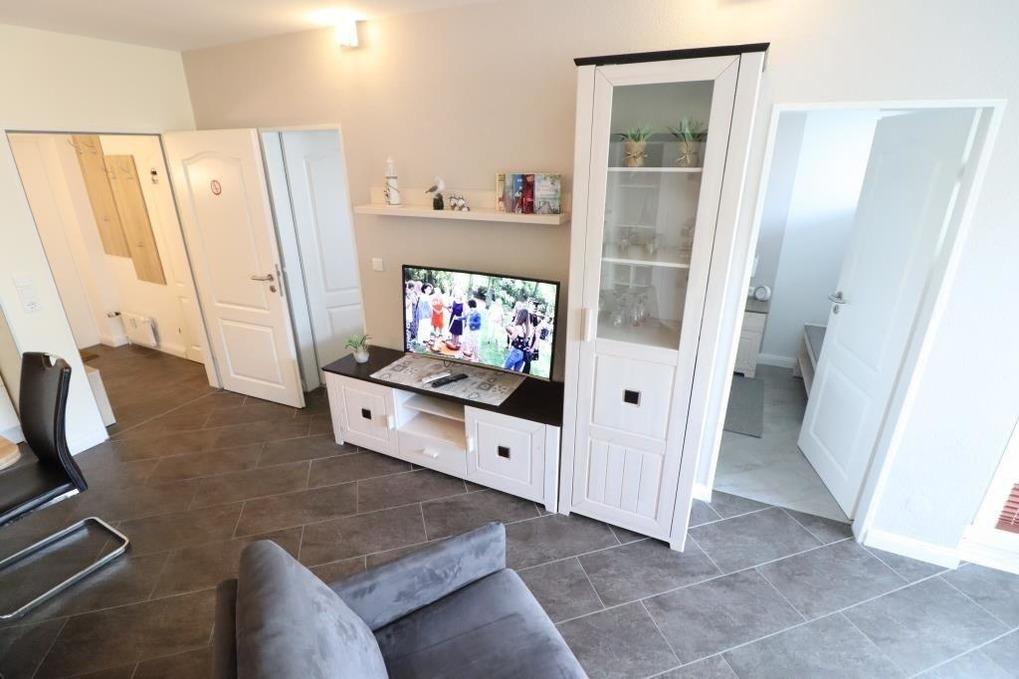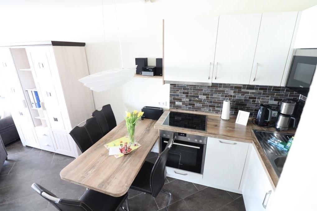Renovierte Ferienwohnung mit einem Schlafraum mit Doppelbett 1,80mx2m, 1 Wohnschlafraum mit Schlafsofa 1,60mx2m, Küchenzeile mit Backofen, Kühlschrank, Gefrierfach, Spülmaschine und Mikrowelle, WLAN kostenlos, 2xTV, Dusche /WC