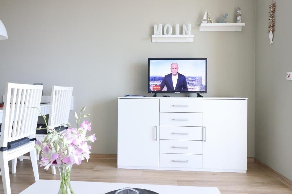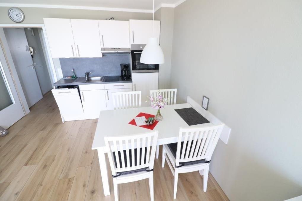 Die Wohnung ist ca. 40qm groß und verfügt über eine vollverglaste Loggia mit direkter Seesicht und Blick auf Neuwerk. Die Wohnung ist für 4 Personen ausgestattet, aufgrund der Größe beträgt die ideale Belegung 2 Personen. Es gibt ein Schlafraum mit einem Doppelbett 1,80mx2m und ein Wohnraum mit Schlafsofa 1,60mx2m. Die Küchenzeile ist im Wohnraum integriert und mit einem Backofen, Ceranfeld, Geschirrspüler und Kühlschrank ausgestattet. Im Badezimmer steht Ihnen eine Dusche / WC zur Verfügung.