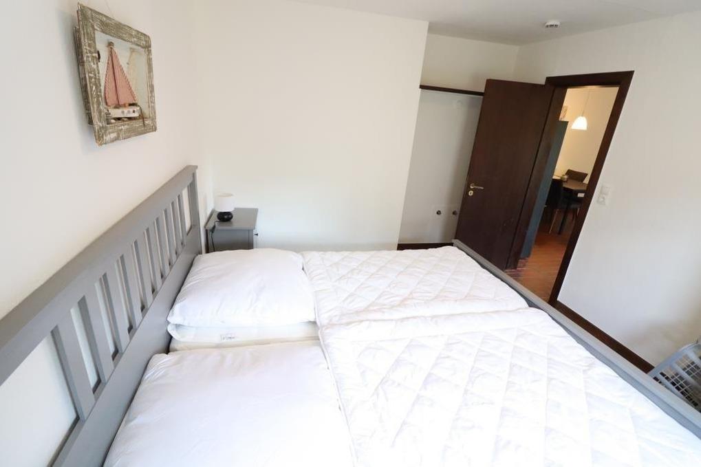 Die Wohnung verfügt über 1 Schlafraum mit Doppelbett 1,80mx2m, 1 Schlafraum mit einem Einzelbett 0,90mx2m, 1 Wohnraum mit Schlafsofa, TV, kleine separate Küche mit Küchenzeile, Backofen, Kühlschrank und Gefrierfach, Dusche/WC