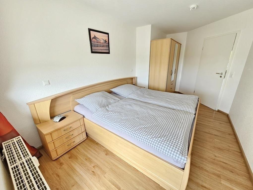 Gemütliche Ferienwohnung im Haus Nordseebrandung mit einem Schlafraum mit einem Doppelbett, einem Schlafraum mit einem Etagenbett, ein Wohnraum, Küchenzeile mit Mikrowelle, Backofen und Kühlschrank, Dusche / WC, Radio-CD, TV