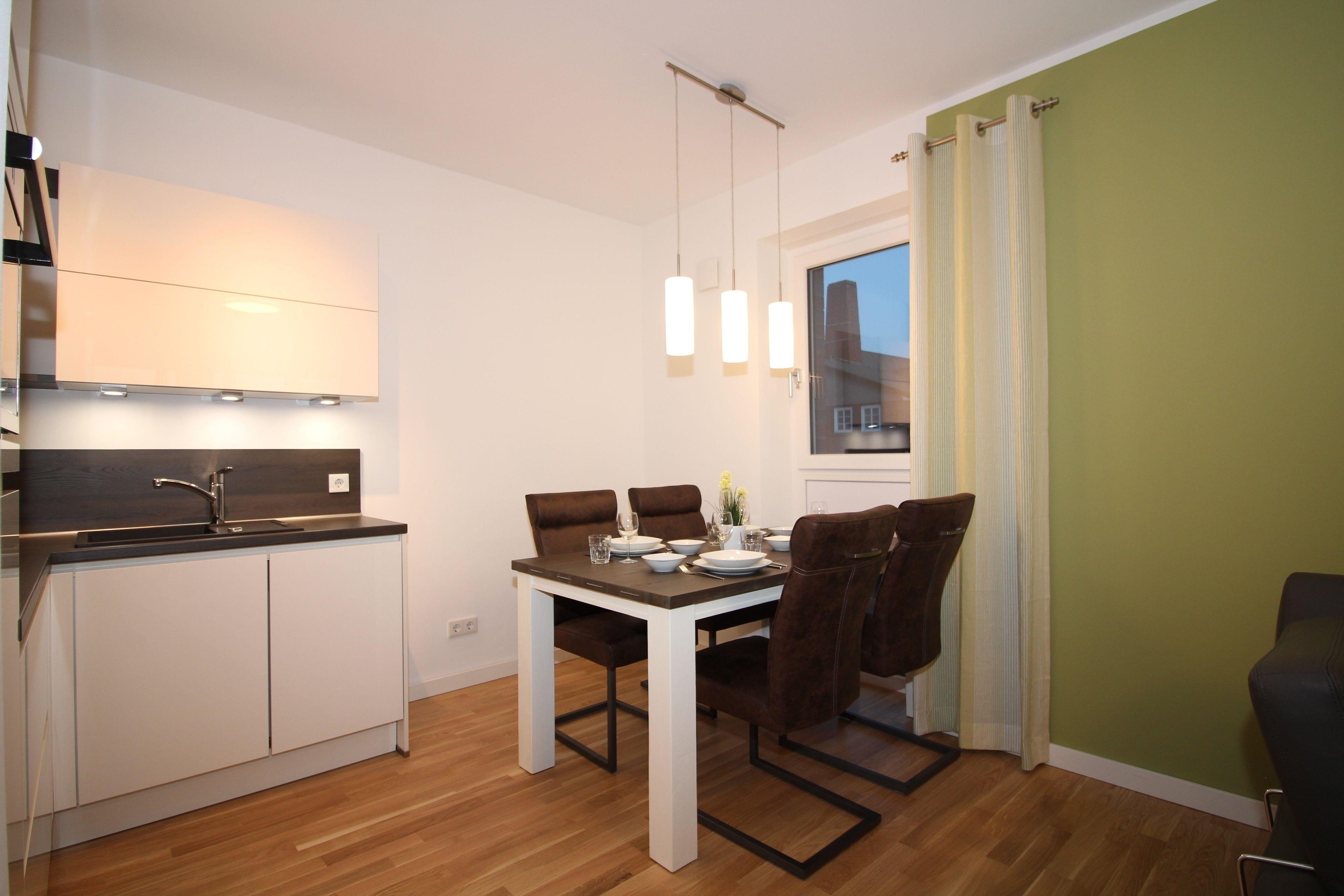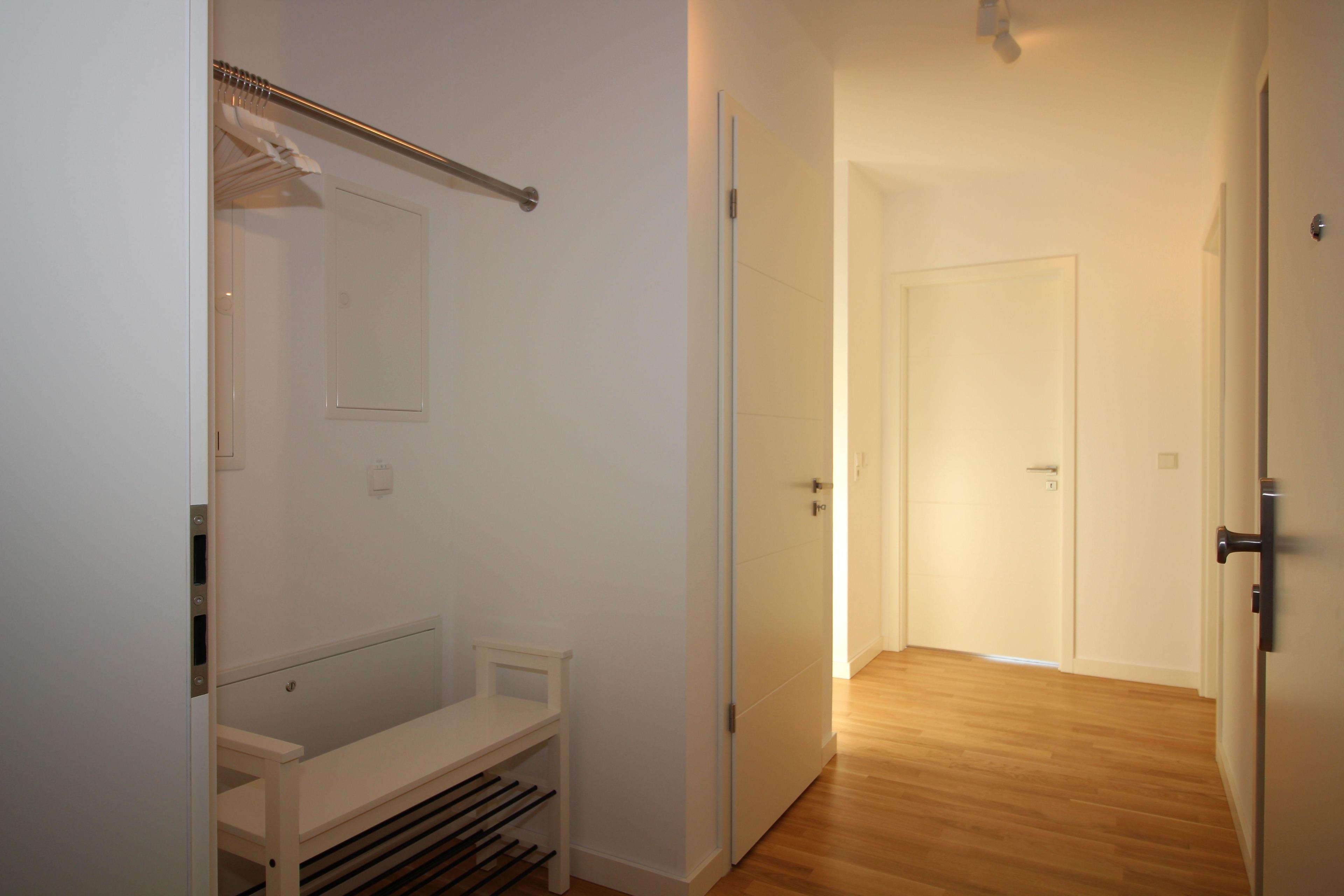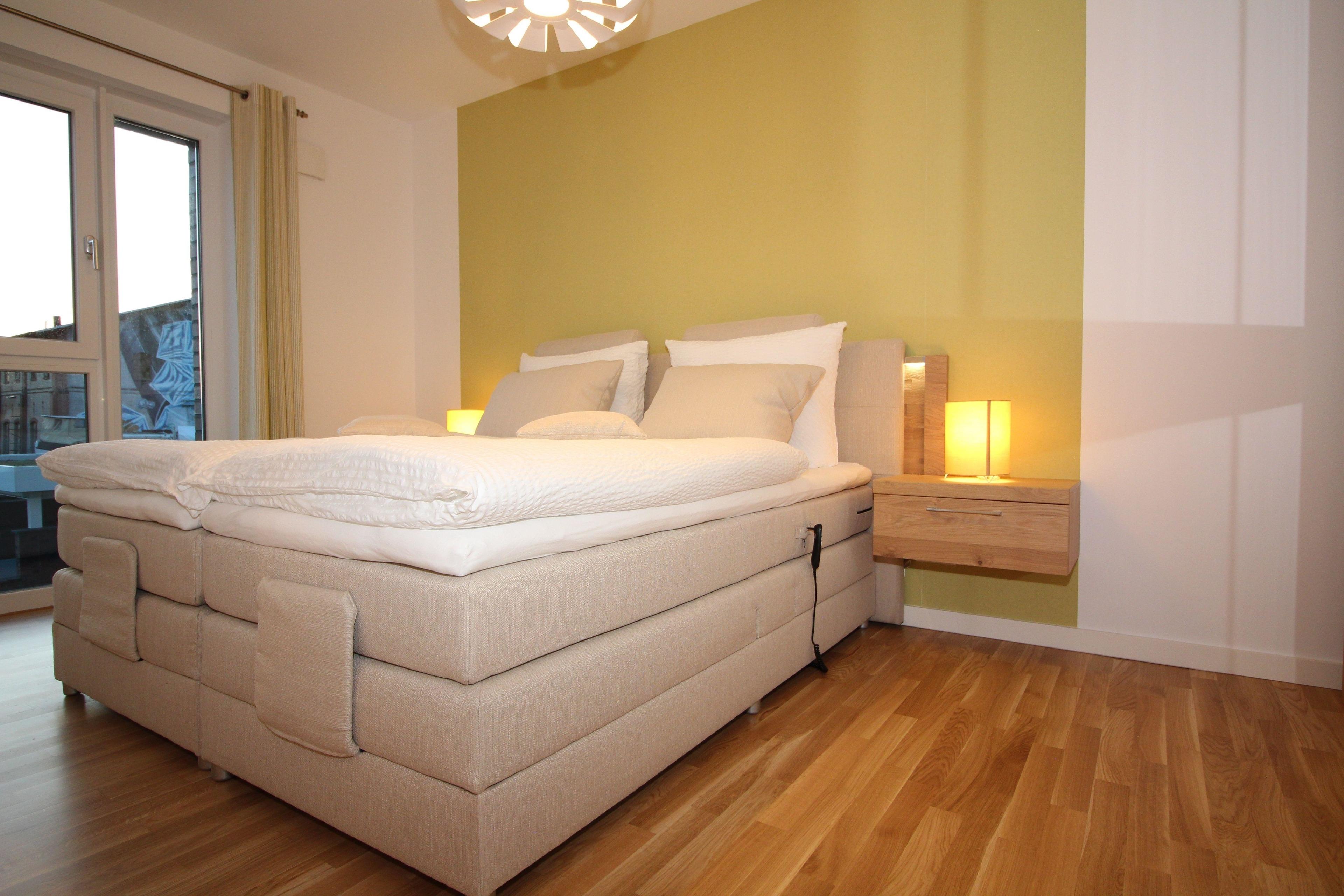Neubauwohnung an der City-Marina für 4 Personen auf ca. 69 qm, tolle 3-Zimmer Luxus Ferienwohnung in der 1. Etage mit Lift, Fußbodenheizung und Lüftungsanlage, elektrisch verstellbare Boxspringbetten im Schlafzimmer I und hohes Einzelbett im Schlafzimmer II, 140cm breites hochwertiges Schlafsofa im Wohnbereich, voll ausgestattete Küche mit Mikrowelle + Spülmaschine.