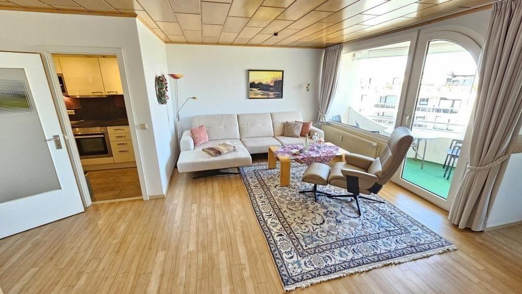 Die Wohnung ist nach Westen ausgerichtet und bietet Ihnen die Möglichkeit, von der überdachten Loggia (mit elektrischer Markise versehen) die herrliche Sicht auf die See genießen zu können. Beobachten Sie den Schiffsverkehr oder genießen Sie entspannt die wunderschönen Sonnenuntergänge. Ihr Fahrrad können Sie im abgeschlossenen Fahrradkeller unterstellen. Hier besteht auch die Möglichkeit, E-Bikes aufzuladen.