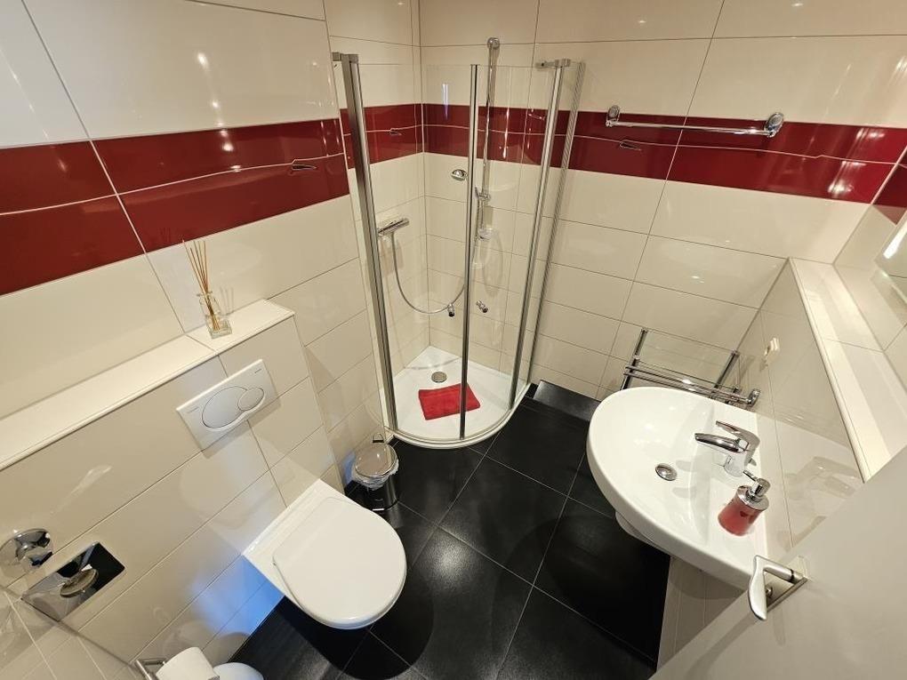 Die Wohnung "Meerblick" befindet sich in der 4 Etage im Haus Trafalgar in Döse und verfügt über viele Annehmlichkeiten um Ihren Urlaub so angenehm wie möglich zu gestalten. Über 2 Etagen haben Sie ausreichend Platz für bis zu 4 Personen. Im unteren Bereich befindet sich das Wohnzimmer mit Zugang zur Loggia, der Essbereich um die in der separaten Küche zubereitete kulinarische Köstlichkeiten zu genießen. Das Bad mit Dusche / WC ist behindertenfreundlich gestaltet. Im oberen Stockwerk befindet sich einmal ein Schlafzimmer mit einem Doppelbett und ein Schlafzimmer mit 2 Einzelbetten. Auch hier steht Ihnen noch ein Bad mit Dusche / WC zur Verfügung.