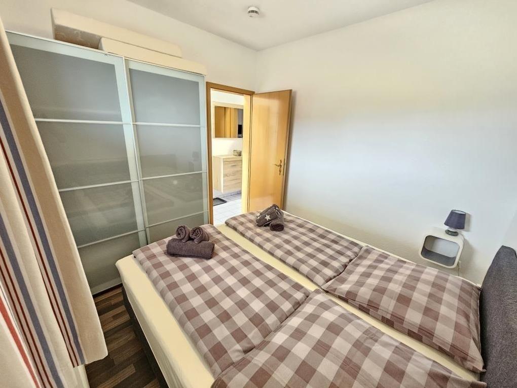 Viele Extras in dieser Wohnung laden zu einem entspannten Urlaub ein. Die in der 1. Etage liegende Ferienwohnung ist mit 2 Schlafräumen (jeweils ein Doppelbett 2x0,90x2m vorhanden), einem Wohnraum mit Küchenzeile, einem kleinen Zimmer mit dem zweiten TV und einem Badezimmer mit Dusche / WC ausgestattet. Wer mag kann morgens gemütlich am Esstisch frühstücken oder abends entspannt auf dem Westbalkon entspannen. Im Wohnraum finden Sie nicht nur eine komplett ausgestattete Küchenzeile mit Geschirrspüler, sondern auch ein Waschtrockner, den Sie kostenlos nutzen können. Erleben Sie ein paar entspannte Tage in dieser schönen Ferienwohnung.