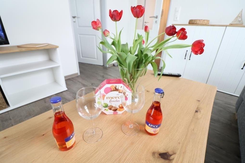 Unseren Gästen steht in jeder Ferienwohnung eine kleine Erstausstattung für den ersten Tag bei Ihrer Ankunft zur Verfügung. Dazu gehört (unabhängig von der Aufenthaltsdauer) Spülmittel, 1 Spültuch, 1 Schwamm, etwas Toilettenpapier und falls in der Wohnung ein Geschirrspüler vorhanden ist, auch 1-2 Spülmaschinen-Tabs.