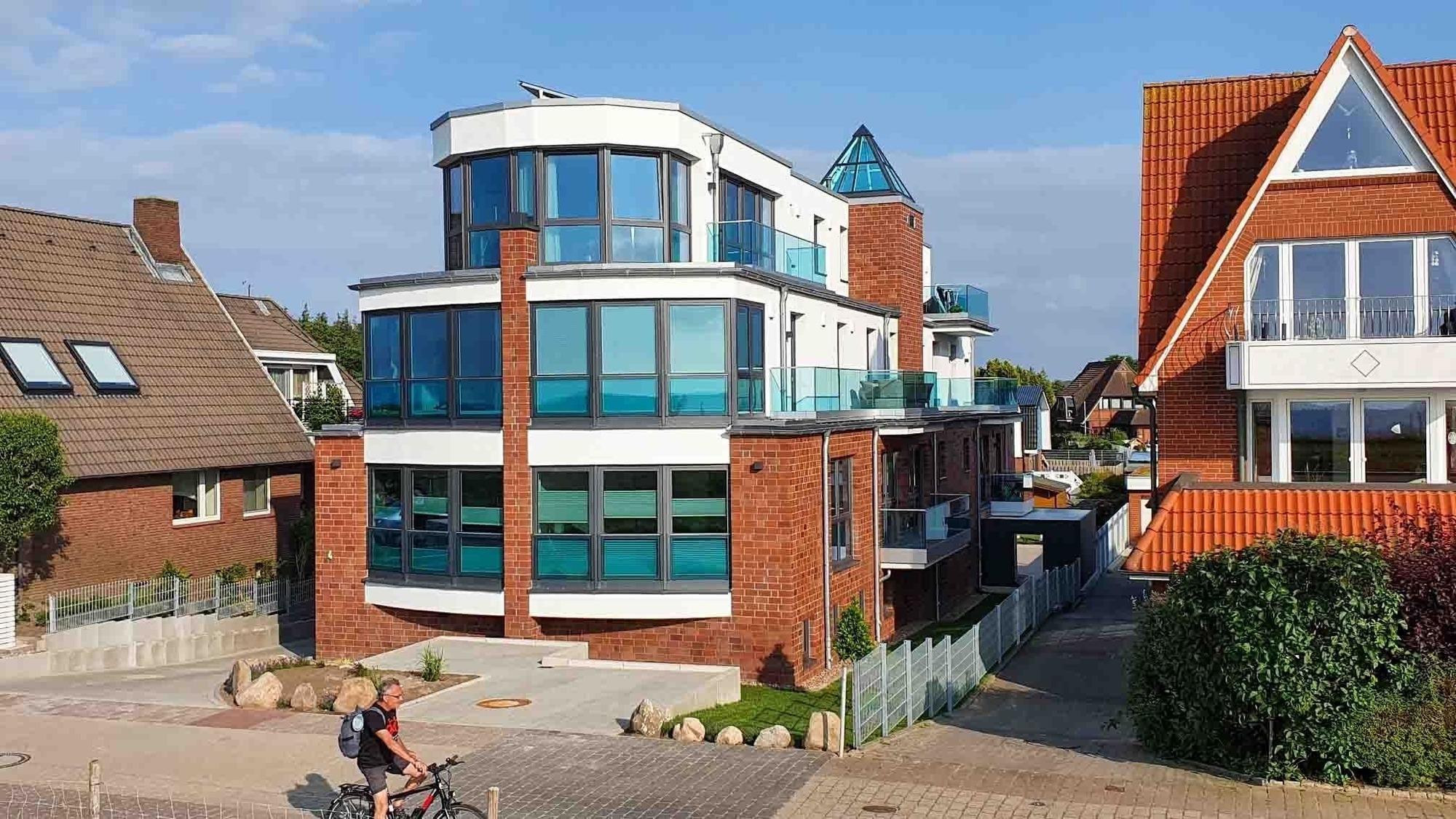 Der Außenbereich der eleganten Ferienwohnung Ankerplatz Duhnen bietet eine ideale Umgebung für Erholung und Entspannung. Nur 50 Meter trennen die Gäste von einem traumhaften Strand, während die Liegewiese mit Sonnenliegen zum Sonnenbaden einlädt. Vom privaten Balkon aus genießen Besucher den atemberaubenden Blick auf das Meer. Die großzügige, ruhige Gartenanlage steht gemeinschaftlich zur Verfügung und bietet einen perfekten Rückzugsort in der Natur. Neben der Liegewiese können Gäste auch die Gartenmöbel nutzen, um im Freien zu verweilen. Für aktive Stunden stehen ein Fitnessbereich sowie eine Sauna zur Verfügung. Die Lage in der ersten Reihe am Strand macht das Apartment zu einem idealen Urlaubsziel für diejenigen, die die maritim-frische Luft und die Schönheit der Küstenlandschaft erleben möchten. Ein privater Parkplatz sowie eine Ladesäule für Elektroautos runden das Angebot ab.