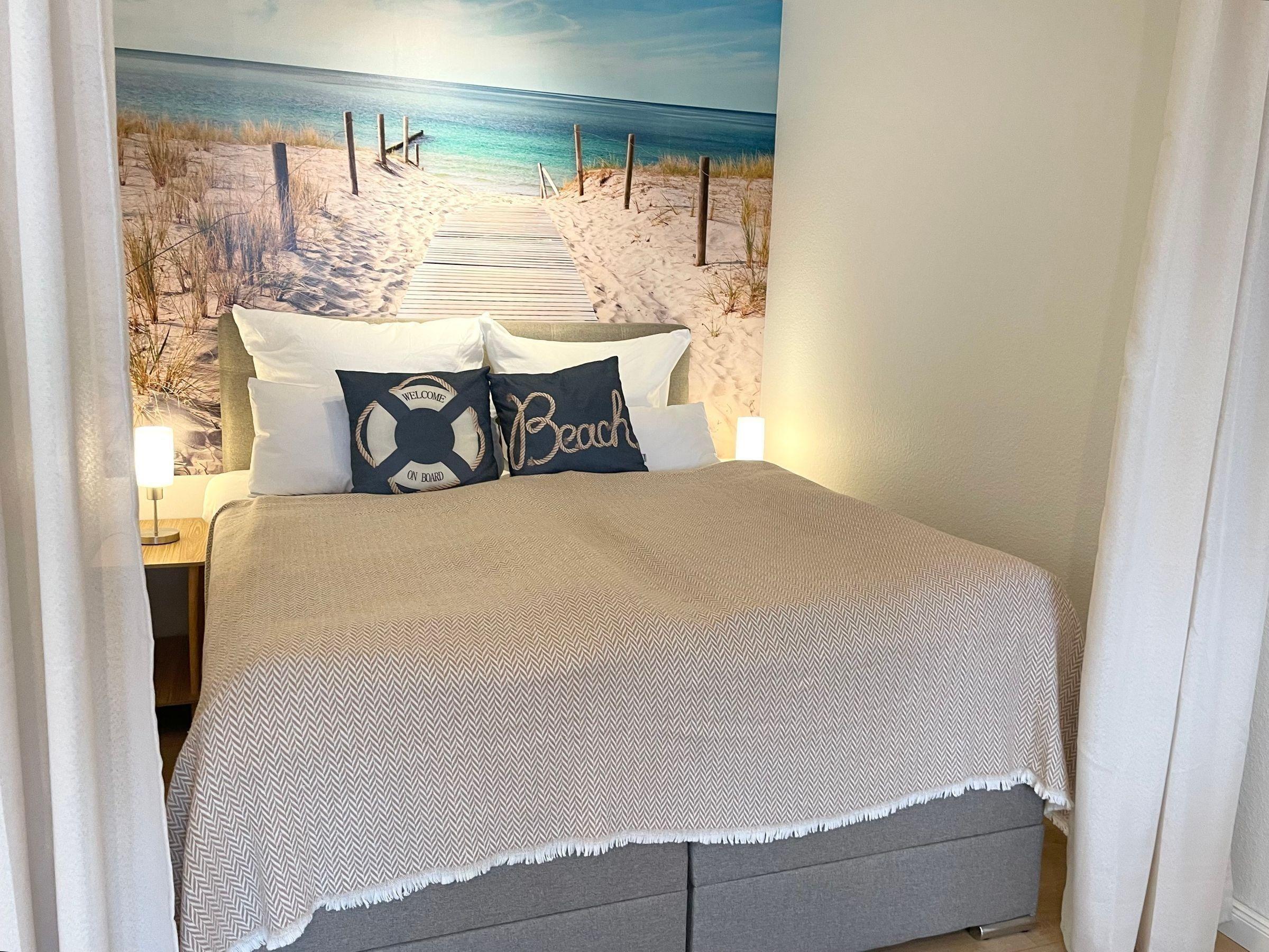 In dieser traumhaften Ferienwohnung erwartet den Besucher ein lichtdurchfluteter Wohnraum mit atemberaubendem Meerblick. Das komfortable Boxspringbett ist durch Vorhänge abgeteilt und sorgt für erholsame Nächte. Neben einem separaten Schlafzimmer mit einem gemütlichen Einzelbett (120x200 cm) bietet das Wohnzimmer ein Schlafsofa für zusätzliche Gäste. Die offene, gut ausgestattete Küche ist ideal für kulinarische Köstlichkeiten, während der Esstisch mit Meerblick einladende Mahlzeiten verspricht. Das moderne Bad verfügt über eine entspannende Regendusche. Gemeinschaftliche Annehmlichkeiten im Haus umfassen ein Schwimmbad und eine Sauna, die zur Entspannung einladen. Zudem stehen im Keller Waschmaschinen und Trockner zur Verfügung. Die Ferienwohnung befindet sich im 3. Stock, bequem erreichbar über den Fahrstuhl.