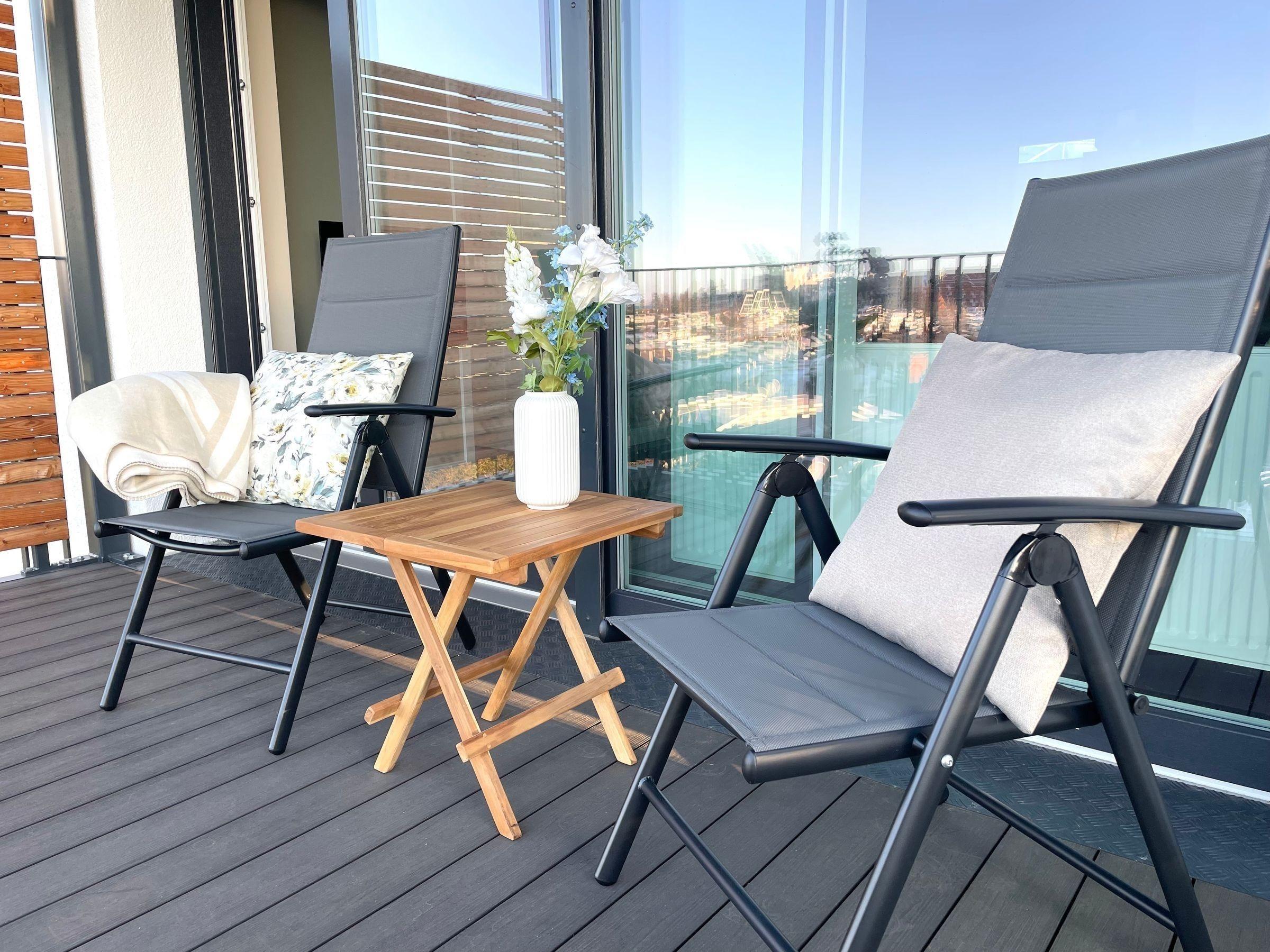 Die Ferienwohnung Nr. 5 im Haus Seaside 53° in Cuxhaven bietet einen beeindruckenden Außenbereich mit einem großen, überdachten Balkon, der Meerblick bietet. Hier können Gäste die frische Meeresbrise genießen und entspannende Stunden verbringen. Der Balkon ist der perfekte Ort, um die morgendliche Sonne zu begrüßen oder den Tag bei einem Glas Wein ausklingen zu lassen.