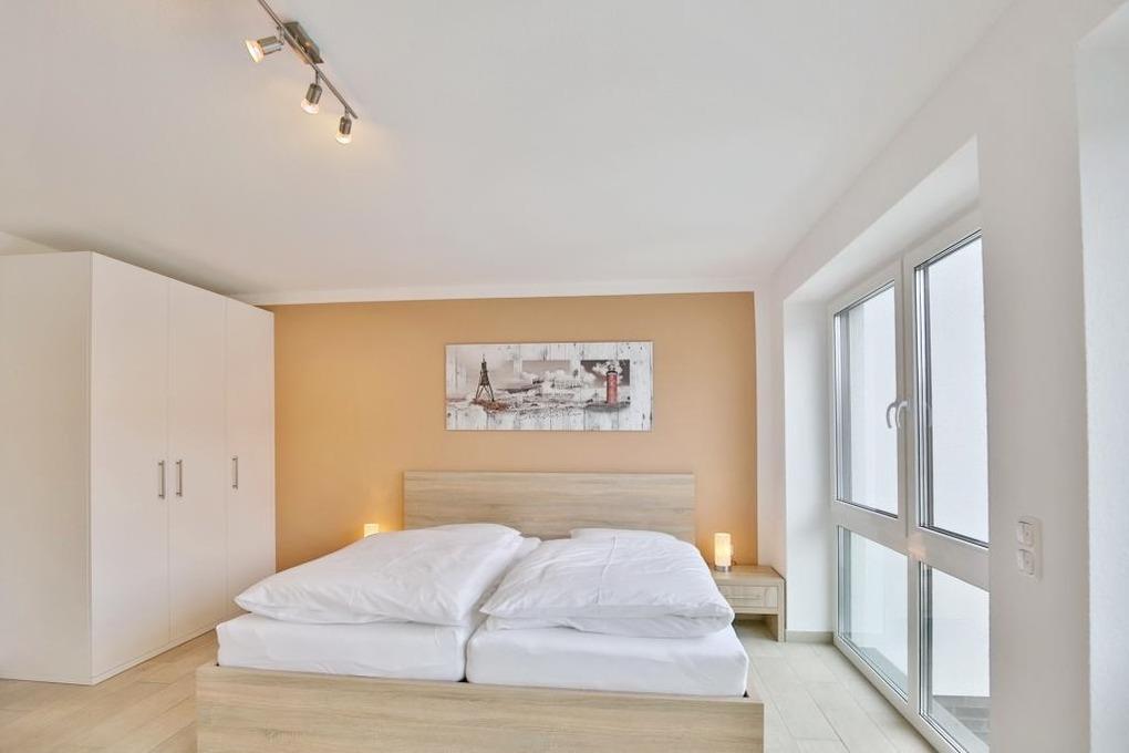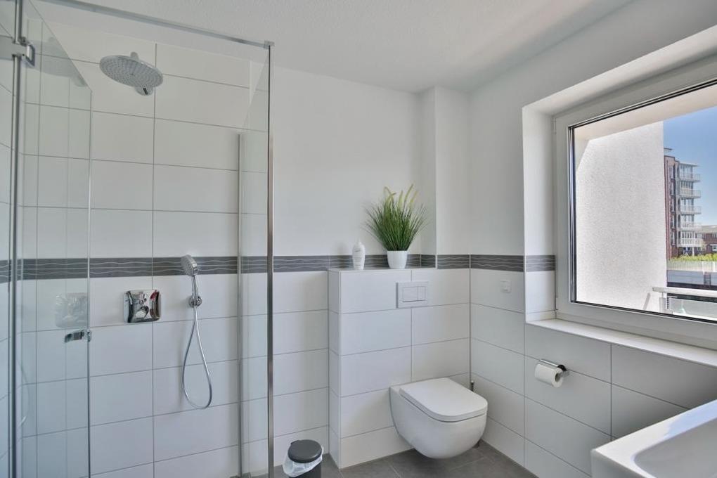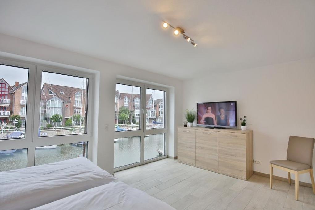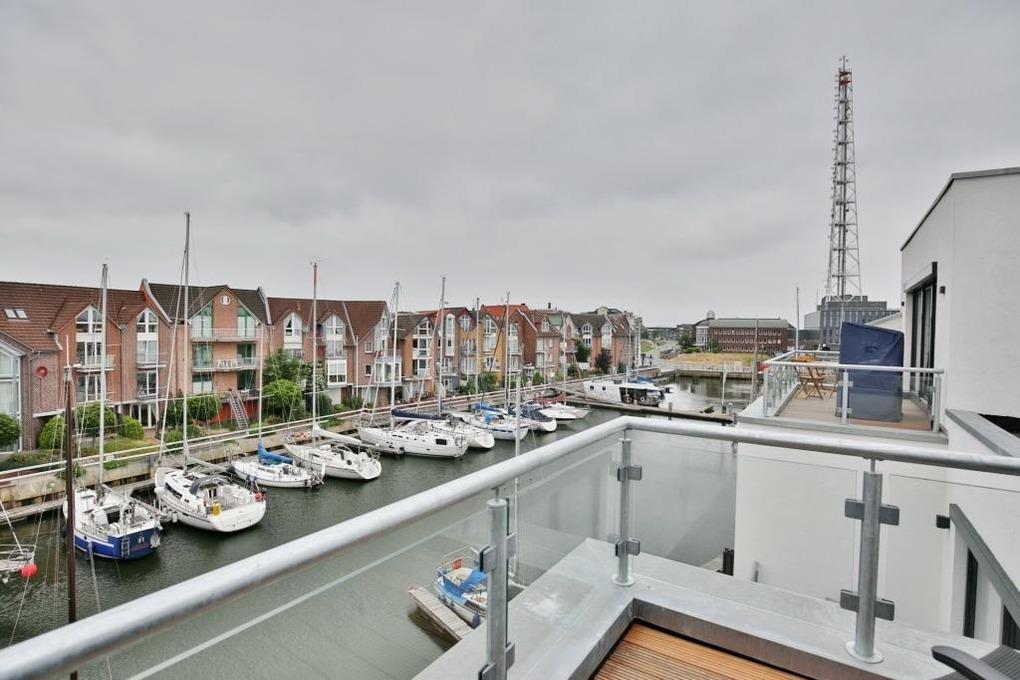 Modernster Neubau für bis zu 6 Pers. auf 4 Etagen mit höchstem Komfort. 2 Wohnzimmer, 3xBalkon/Terrasse, 3 Schlafzimmer mit Doppelbetten, 5 x LCD-TV bis 65", Bluray 4K-Player, alle Fenster mit elektrischen Außenrollläden, Fußbodenheizung, W-LAN, offene Küchenzeile (Backofen, Geschirrspüler, Nespresso Maschine etc.), große Terrasse (west) mit Blick in die Marina, Gäste/WC. 1. Etage: Großes Schlafzimmer mit Doppelbett mit TV, Du/WC mit Waschmaschine/Trockner [&] 1 Balkon (ost). 2. Etage: Zwei Schlafzimmer (Doppelbetten) [&] TV, Badewanne/Dusche/WC. 3. Etage: Lounge mit großer Dachterrasse (west), TV und kleiner Küchenzeile [&] Nespressomaschine. Fahrradschuppen (eBike Lademöglichkeit), 1 PKW-Stellplatz am Haus.