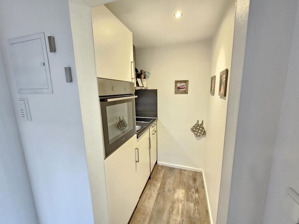 Die Wohnung 8 wurde renoviert und ist hell, modern und gemütlich eingerichtet. Im Schlafraum befindet sich ein Doppelbett 1,60mx2m und ein Sofa. In der separaten Küchenzeile steht Ihnen eine komplette Haushaltsausstattung zur Verfügung, wie z.B. Kaffeemaschine, Wasserkocher, Toaster, Töpfe, Pfanne, Geschirr, Besteck, Backofen, Ceranfeld, Geschirrspüler und Kühlschrank. Dusche / WC ist vorhanden. Auch ein Balkon gehört zur Wohnung.