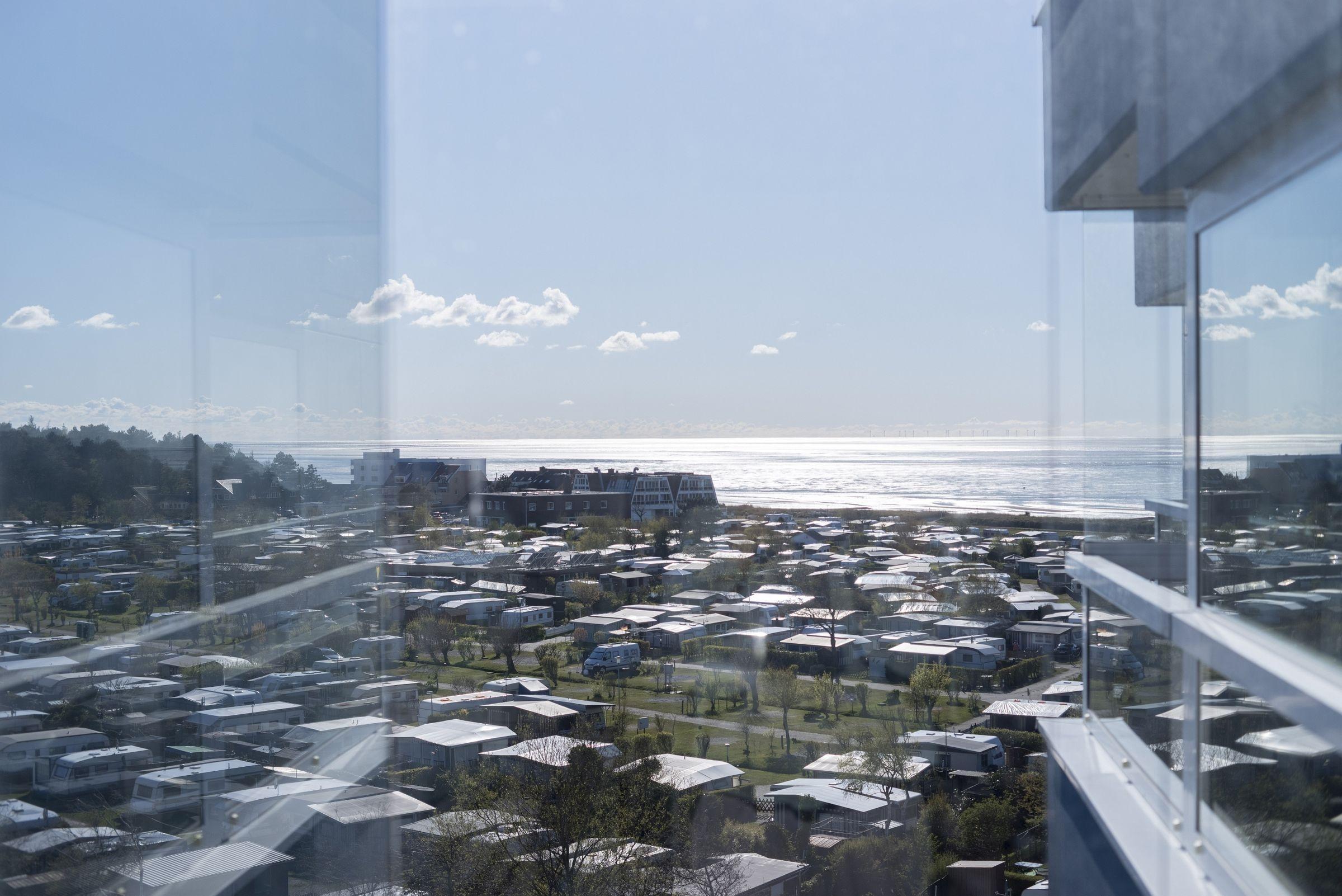 Der Außenbereich der „Frischen Brise FeWo 07.03“ ist ein Highlight für jeden Gast. Die Ferienwohnung bietet eine eigene, überdachte und geschlossene Loggia von etwa 4,5 m², die auch an windigen Tagen genutzt werden kann und einen beeindruckenden Meerblick verspricht. Des Weiteren steht den Gästen ein gemeinschaftlicher Wellnessbereich zur Verfügung, der eine Sauna und einen beheizten Indoor-Pool beinhaltet – ideale Orte zur Entspannung nach einem aktiven Tag. Der Sandstrand liegt nur 300 Meter entfernt und lädt zu Spaziergängen oder Wassersportaktivitäten ein. Umgeben von einem Waldgebiet, bietet die Umgebung zahlreiche Wander- und Joggingmöglichkeiten. Die Kombination aus Strandnähe und der idyllischen Natur macht diese Ferienwohnung zur perfekten Wahl für Erholungsuchende und Aktive.