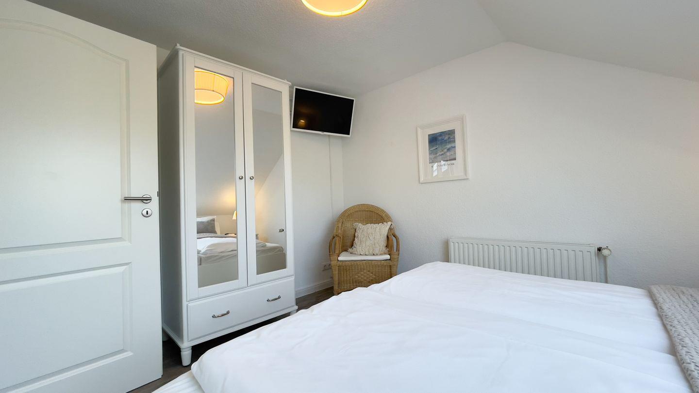 In dieser 3-Raum-Ferienwohnung finden bis zu 6 Personen in zwei separaten Schlafzimmern sowie einem Schlafsofa im Wohnbereich Platz.