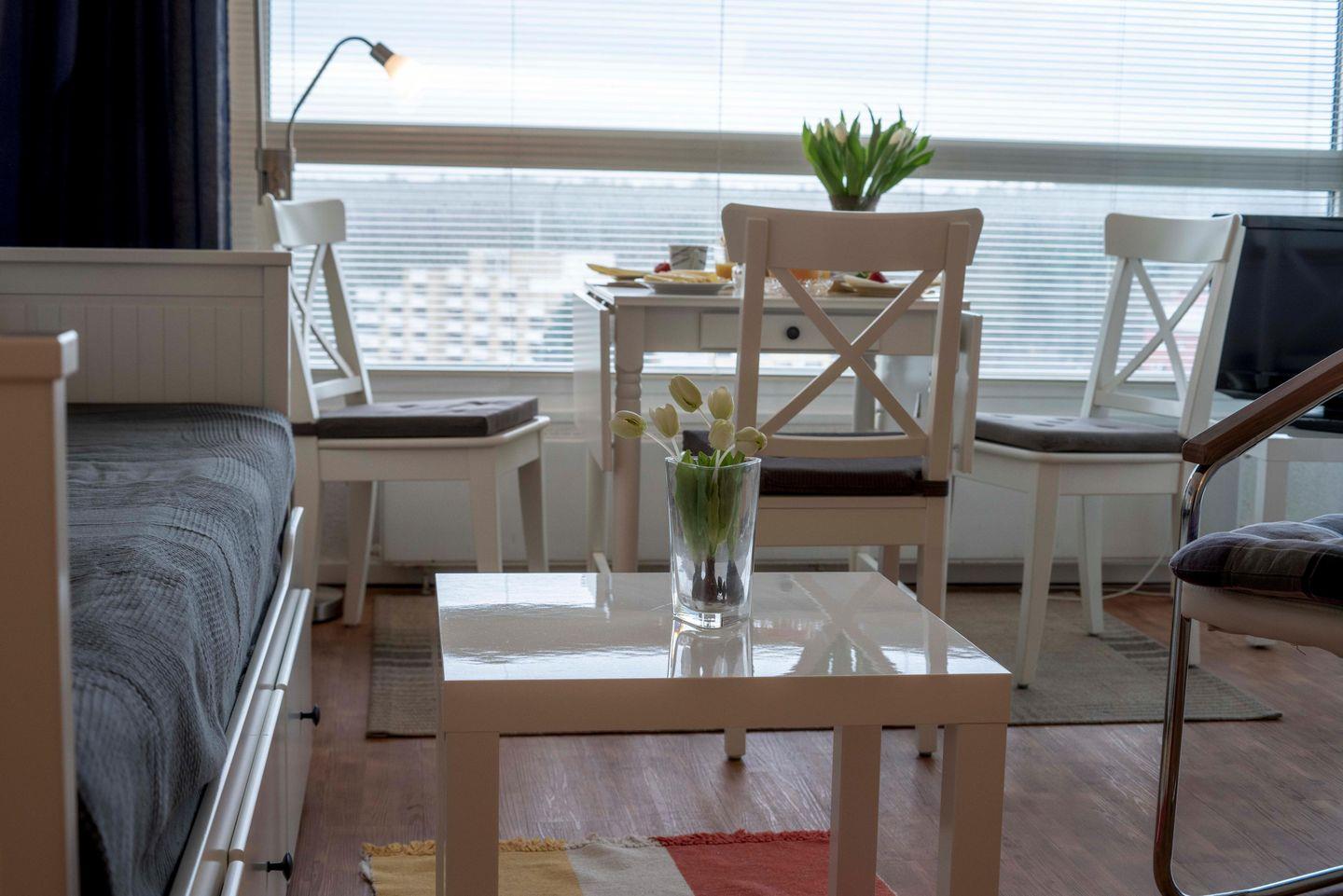 Die Wohnung erstreckt sich über 25 m² im 8. Stock und ist bequem mit einem Aufzug zu erreichen. Die Wohnung bietet Platz für bis zu drei Personen und ist ideal für Familien oder Paare auf der Suche nach einer erholsamen Zeit am Meer. Das Apartment ist mit einem 160cm breiten ausziehbaren Tagesbett und einem Schrank-Klappbett ausgestattet. Mit einer gut ausgestatteten Kochnische, inklusive Herd, Kühlschrank, Mikrowelle, Kaffeemaschine, Toaster und Wasserkocher, haben Sie die Möglichkeit, Ihre eigenen Mahlzeiten zu zubereiten und beim Kochen gleichzeitig den Blick auf das Meer zu genießen. Ein Esstisch steht Ihnen zur Verfügung, um zusammenzusitzen und die kulinarischen Köstlichkeiten zu genießen.