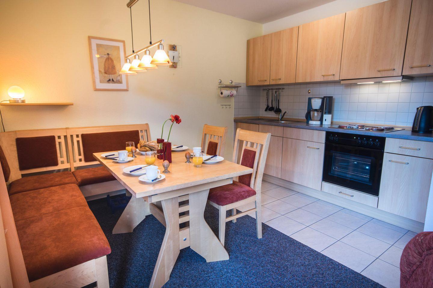 Die offene Küche, die sich zum Wohnzimmer hin erstreckt, ist mit modernen Annehmlichkeiten ausgestattet. Sie finden hier unter anderem einen 4-Platten-Herd, Backofen, Mikrowelle, sowie Kühlschrank mit Gefrierfach vor. Eine Kaffeemaschine, ein Toaster und ein Wasserkocher runden die Küchenausstattung ab und sorgen dafür, dass es Ihnen an nichts fehlt. Gemütliche Abende können Sie in dem einladenden Wohnzimmer mit Schlafsofa verbringen.