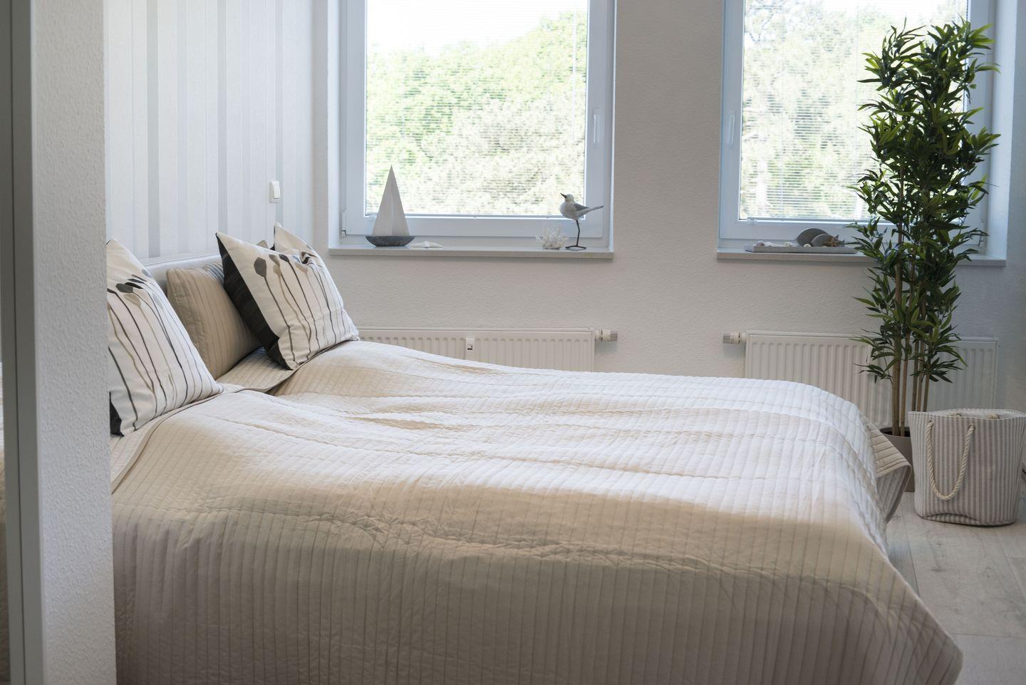 Im 1. Schlafzimmer befindet sich ein großes, gemütliches Kingsize Bett mit durchgehender Matratze. Das 2. Schlafzimmer ist mit 2 Einzelbetten ausgestattet, eines davon ist ein Kinderbett( ca. 70x140). Auf dem bequemen Schlafsofa im Wohnbereich finden 2 weitere Personen Platz.