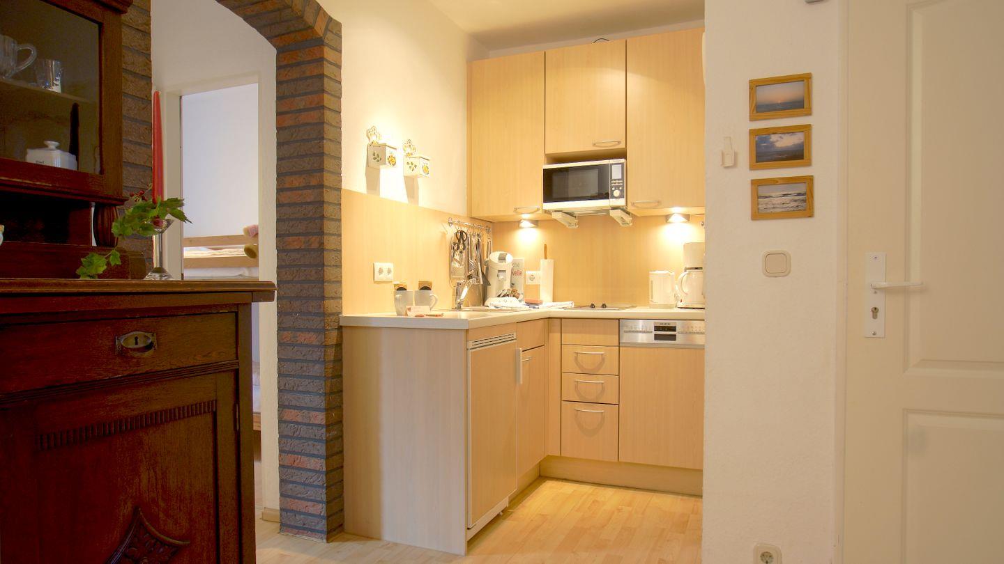 Einem erholsamen Nordseeurlaub steht in diesem 50qm großem Apartment nichts im Wege. Die umfangreich ausgestattete Küchenzeile befindet sich im großzügigen Wohnbereich. Die zwei separaten Schlafzimmer ermöglichen Ihnen eine erholsame Nacht. Das Badezimmer verfügt über eine moderne, ebenerdige Dusche.