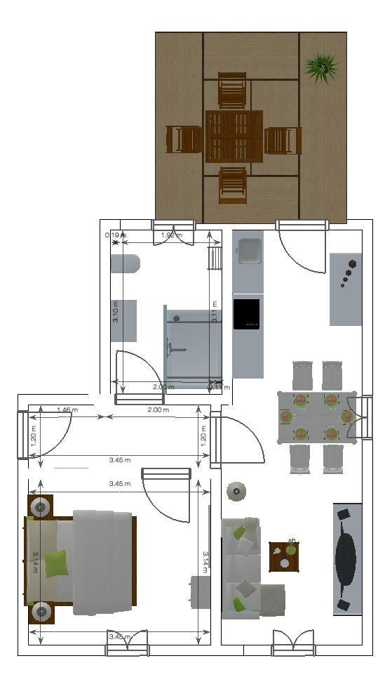Das Badezimmer ist behindertenfreundlich ausgestattet. Zur Wohnung gehört eine eigene Terrasse mit Gartenmöbeln sowie ein Garten.