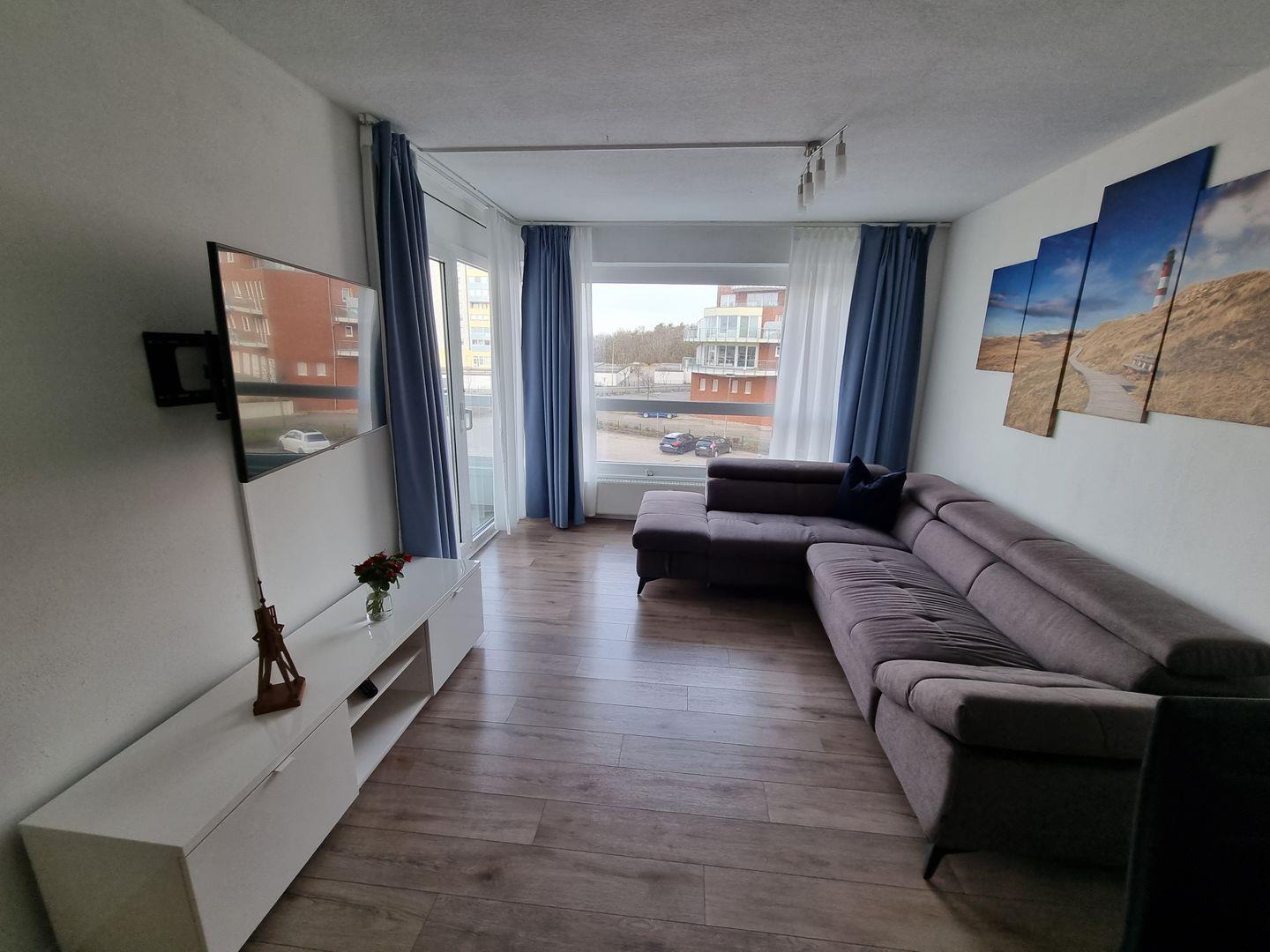 Im Wohnzimmer befindet sich ein Fernseher mit WLAN-Anschluss.
