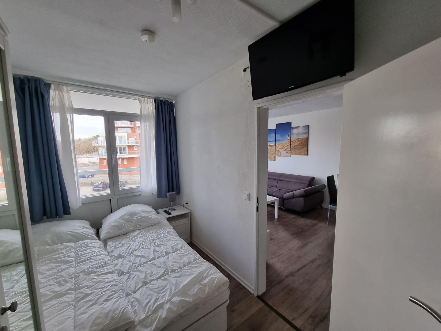 Das Ferien-Apartment wurde im Jahr 2021 saniert, besticht mit Teil-Seesicht und verfügt über ein separates Schlafzimmer mit Doppelbett und einem ausziehbaren Tagesbett. In dem lichtdurchfluteten Wohnzimmer befindet sich ein gemütliches Schlafsofa.