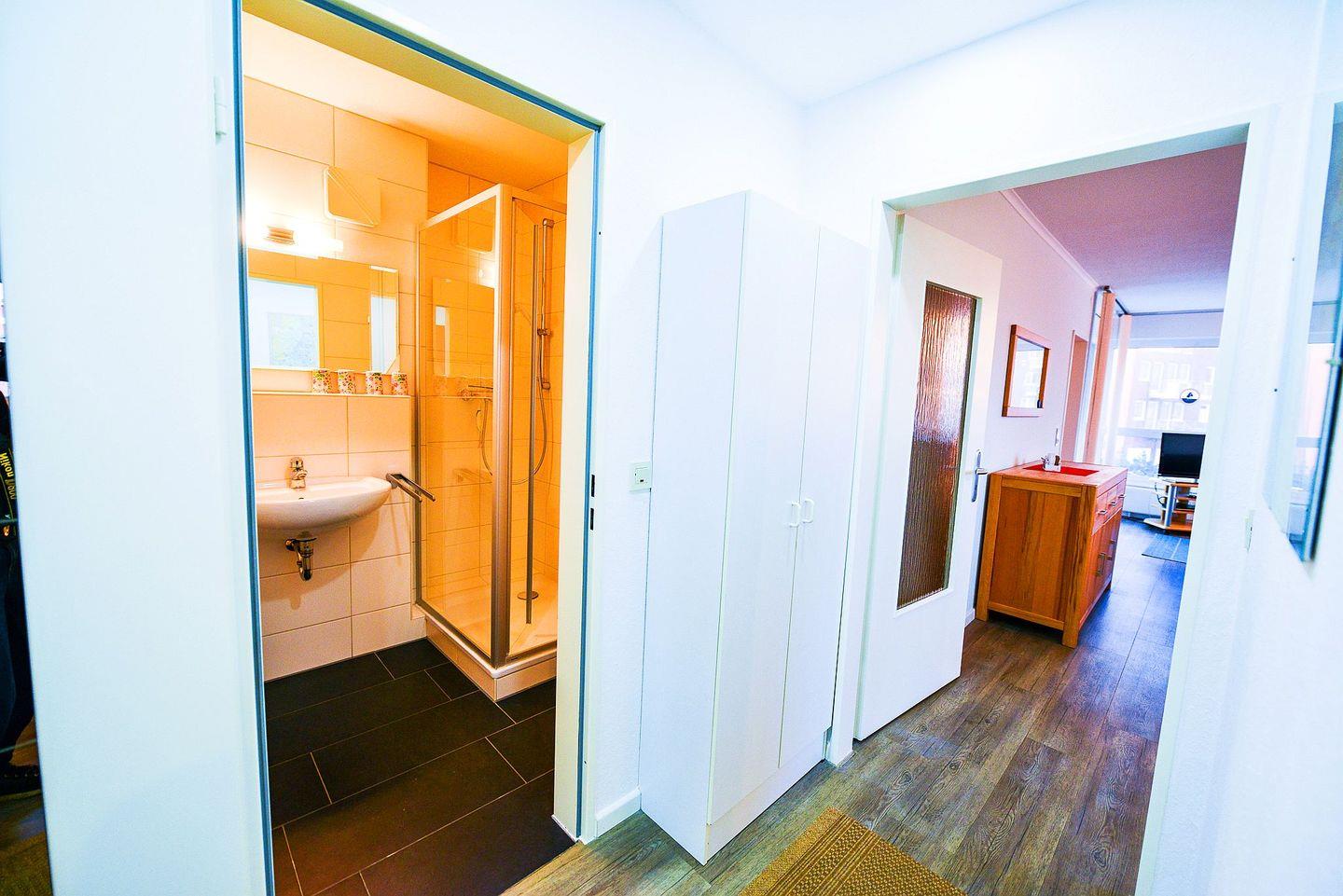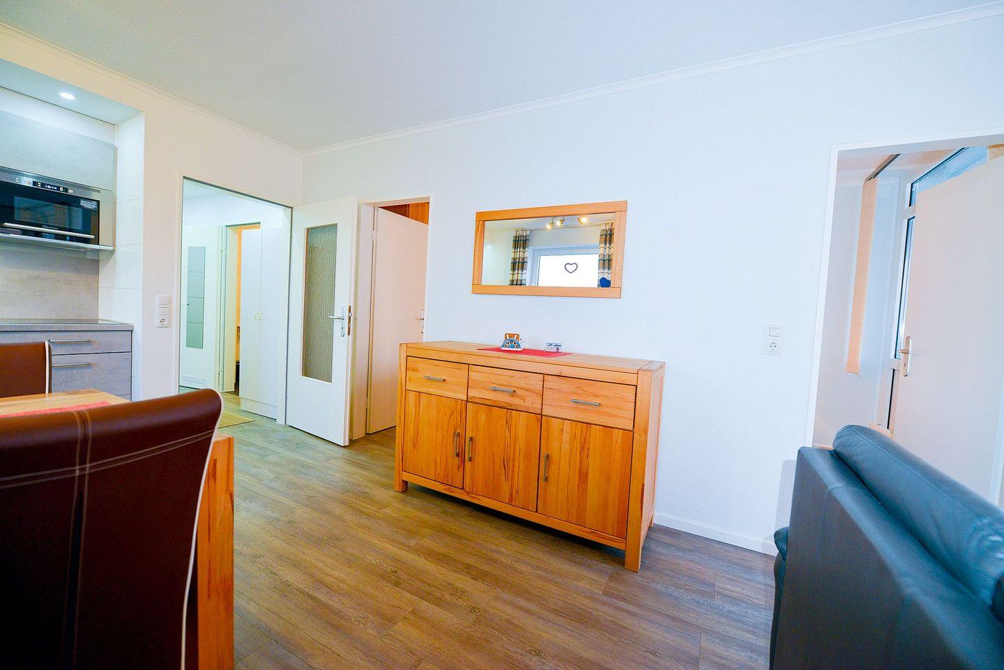 Die 50m² große Ferienwohnung überzeugt Nordseeurlauber mit modernem Nordsee-Flair und schöner, vollwertiger Ausstattung. Von der vollausgestatteten Küche, über den hellen Wohnraum mit Flatscreen TV bis hin zum modernen Bad ist diese Ferienwohnung auf Wohlfühlen an der Nordsee zugeschnitten. Nur 150 Meter liegen zwischen Ihnen und langen Strandspaziergängen und für die Zeit nach langen Strandtagen bietet sich der Balkon dazu an, den Abend an der Meeresluft ausklingen zu lassen. Urlaubern, die Wert auf Entspannung und Wellness legen, können wir das hauseigene Schwimmbad und die Sauna nur wärmstens empfehlen.
