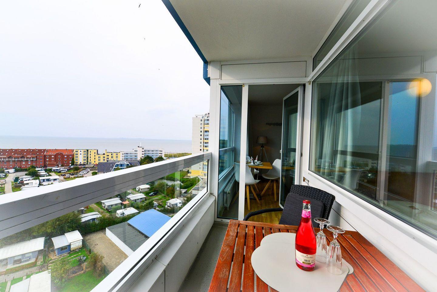 Lange Tage am Strand und Ausflüge an Nordsee können Sie auf dem schönen Westbalkon ausklingen lassen, der von der 10. Etage aus einen wunderbaren Blick garantiert.