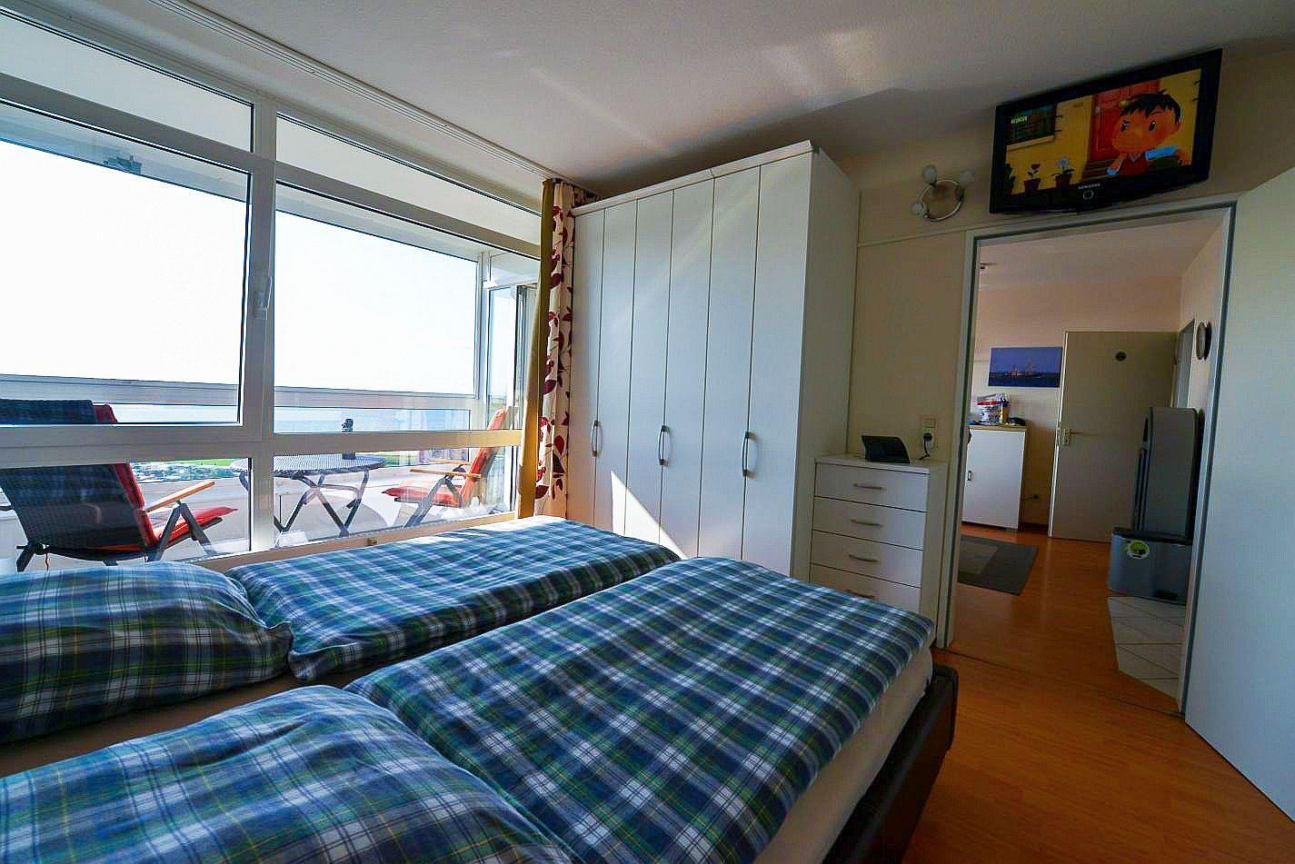 Für die Zeit nach langen Strandtagen bietet sich der überdachte und verglaste Westbalkon, der sich komplett öffnen lässt, dazu an, den Abend an der Meeresluft ausklingen zu lassen und die Panoramseesicht vom 14. Stock aus zu genießen.