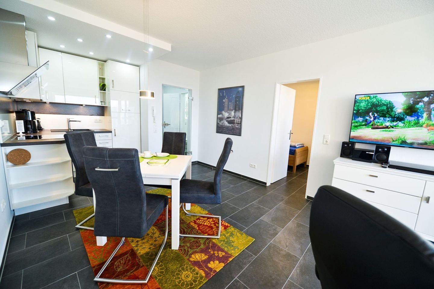 Das einzige, was in Ihrem Nordseeurlaub zählen sollte sind Sie und Ihr Wohlbefinden und damit Sie sich voll und ganz darauf konzentrieren können, finden Sie in dieser schönen Ferienwohnung alles, was Sie dazu benötigen. Von der vollausgestatteten Küchenzeile, über den hellen Wohnraum mit Flatscreen TV (ein weiterer in einem der Schlafräume) bis hin zum neuen Bad mit Regendusche, ist diese Ferienwohnung auf Wohlfühlen an der Nordsee zugeschnitten.
